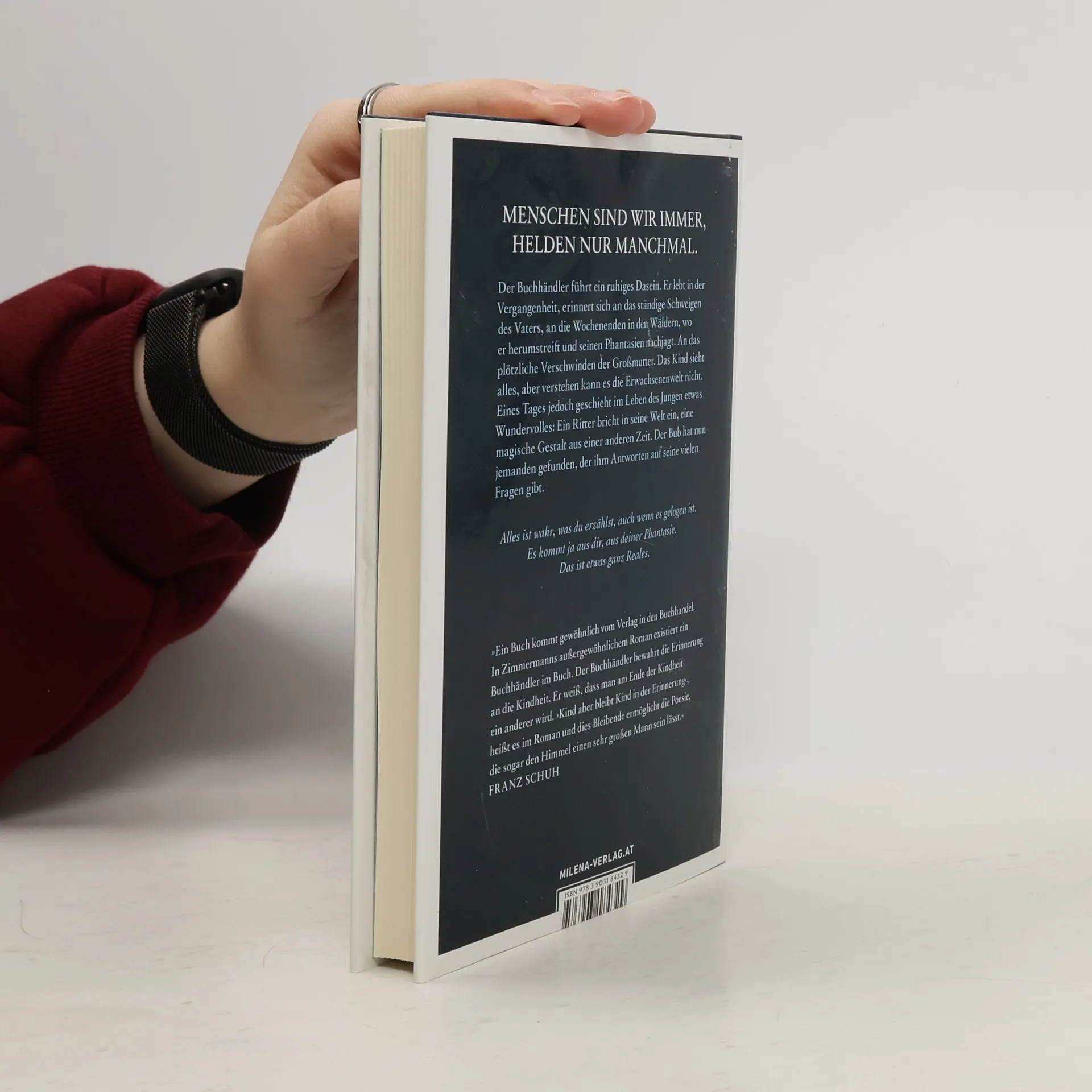 Der Buchhändler führt ein ruhiges Leben. Er lebt stark in der Vergangenheit, erinnert sich an seine Kindheit, an das ständige Schweigen des Vaters, an die Wochenenden in den Wäldern, wo der Bub herumstreift und seinen Phantasien nachjagt. An das plötzliche Verschwinden der Großmutter. An die fremde Frau, die an Großmutters Stelle tritt. Das Kind sieht alles, aber verstehen kann es die Erwachsenenwelt nicht. Doch eines Tages geschieht im Leben des Jungen etwas Wundervolles: Ein Ritter bricht in seine magische Welt ein, eine Gestalt aus einer anderen Zeit. Der Ritter lebt ewig, etwas oder jemand treibt ihn durch die Jahrhunderte und hat offensichtlich Freude daran, ihn die Geschichte der menschlichen Zivilisation durchleben zu lassen. Der Bub hat nun jemanden gefunden, der ihm Antworten auf seine vielen Fragen gibt. In gemeinsamen Gesprächen erzählt ihm der Ritter von seinen Erlebnissen und von seinen Erkenntnissen – hier wird der Roman großartig und das Lesen zum reinen Genuss. Peter Zimmermanns geschliffene und gehaltvolle Prosa erweist sich erneut als gelungenes Beispiel eines magischen Realismus, für den Sachlichkeit und Wunder nicht als Gegensätze gelten.
