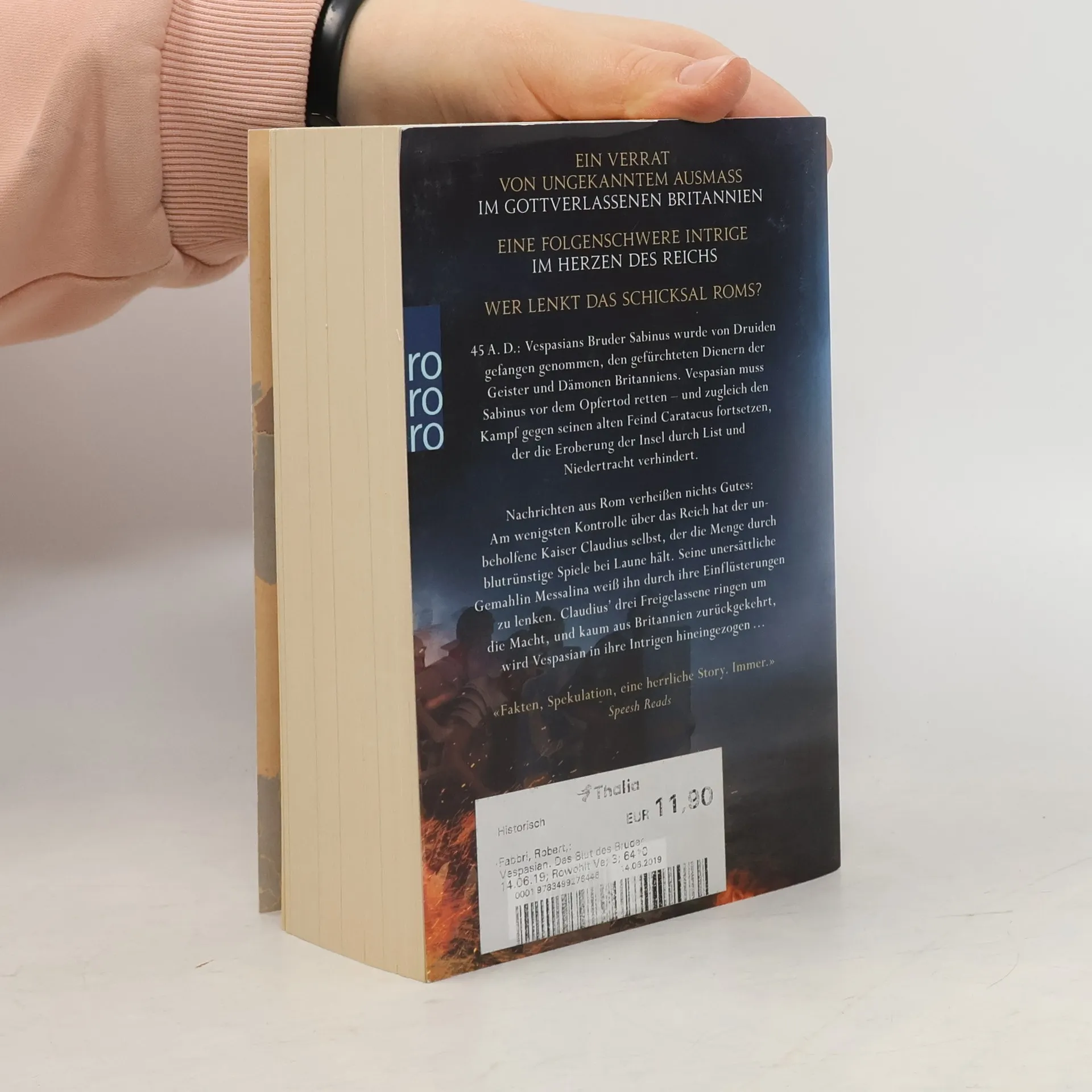 Das britische Bestseller-Epos über das Leben des Kaisers Vespasian geht weiter! Exakt recherchierte Historie und packende Action bieten besten Stoff für Serienleser sowie Fans von Bernard Cornwell und David Gilman. 45 A. D.: Vespasians Bruder Sabinus wurde von Druiden gefangen genommen, den gefürchteten Dienern der Geister und Dämonen Britanniens. Vespasian muss Sabinus vor dem Opfertod retten – und zugleich den Kampf gegen seinen alten Feind Caratacus fortsetzen, der die Eroberung der Insel durch List und Niedertracht verhindert. Nachrichten aus Rom verheißen nichts Gutes: Am wenigsten Kontrolle über das Reich hat der unbeholfene Kaiser Claudius selbst, der die Menge durch blutrünstige Spiele bei Laune hält. Seine unersättliche Gemahlin Messalina weiß ihn durch ihre Einflüsterungen zu lenken. Claudiusʼ drei Freigelassene ringen um die Macht, und kaum aus Britannien zurückgekehrt, wird Vespasian in ihre Intrigen hineingezogen …