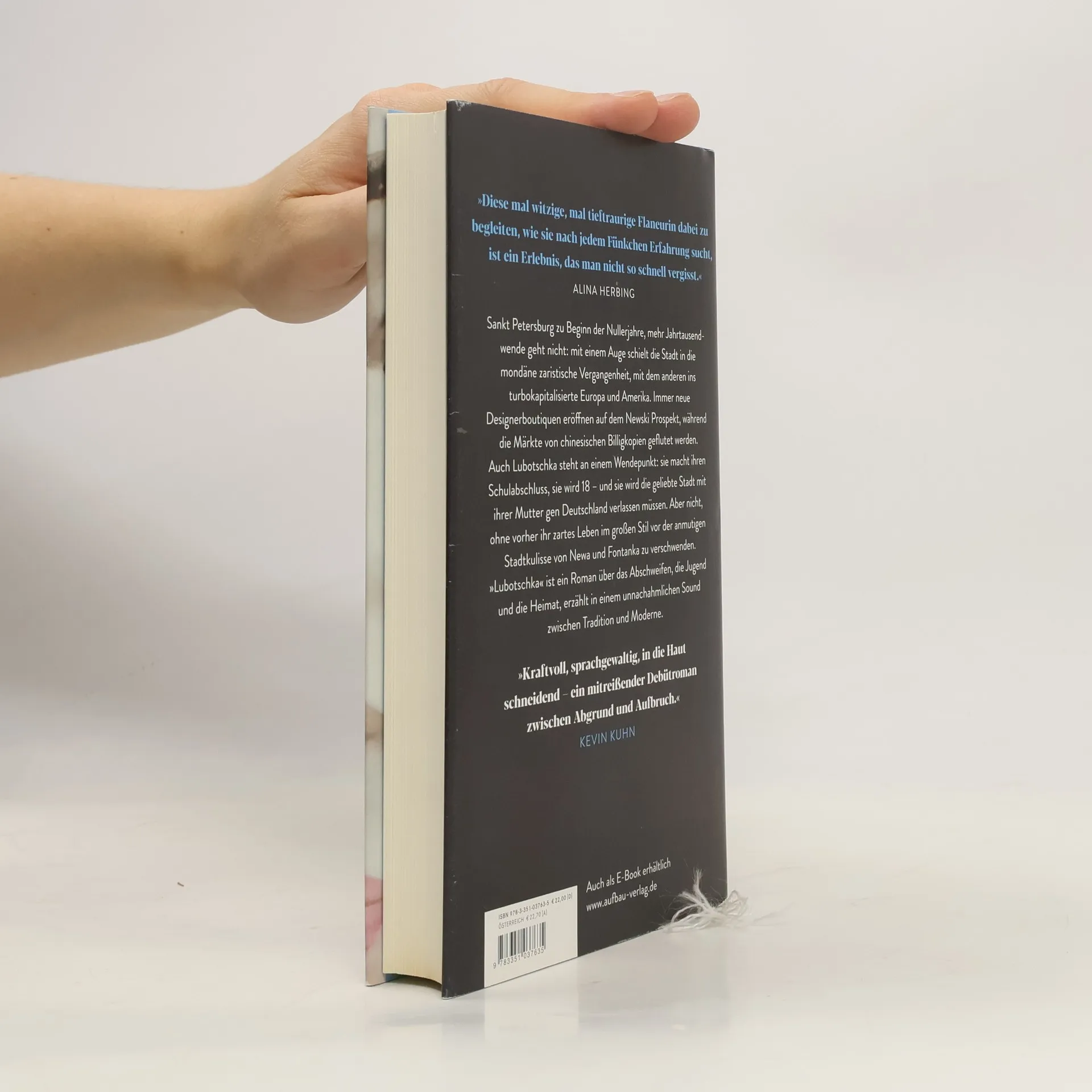 »Diese mal witzige, mal tieftraurige Flaneurin dabei zu begleiten, wie sie nach jedem Fünkchen Erfahrung sucht, ist ein Erlebnis, das man nicht so schnell vergisst.« Alina Herbing. Sankt Petersburg zu Beginn der Nullerjahre, mehr Jahrtausendwende geht nicht: mit einem Auge schielt die Stadt in die mondäne zaristische Vergangenheit, mit dem anderen ins turbokapitalisierte Europa und Amerika. Immer neue Designerboutiquen eröffnen auf dem Newski Prospekt, während die Märkte von chinesischen Billigkopien geflutet werden. Auch Lubotschka steht an einem Wendepunkt: sie macht ihren Schulabschluss, sie wird 18 - und sie wird die geliebte Stadt mit ihrer Mutter gen Deutschland verlassen müssen. Aber nicht, ohne vorher ihr zartes Leben im großen Stil vor der anmutigen Stadtkulisse von Newa und Fontanka zu verschwenden. »Lubotschka« ist ein Roman über das Abschweifen, die Jugend und die Heimat, erzählt in einem unnachahmlichen Sound zwischen Tradition und Moderne. »Kraftvoll, sprachgewaltig, in die Haut schneidend – ein mitreißender Debütroman zwischen Abgrund und Aufbruch.« Kevin Kuhn