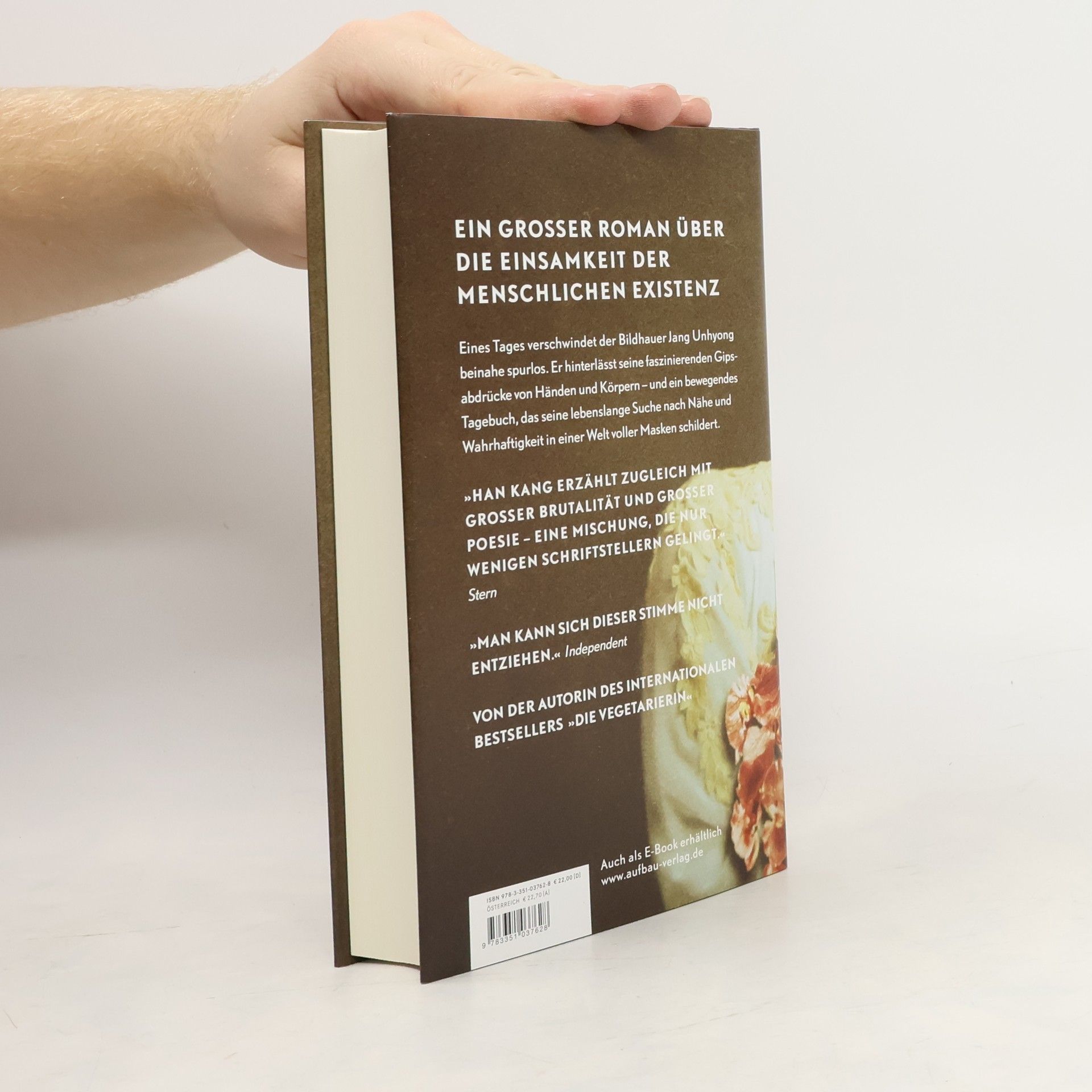 Ein großer Roman über die Einsamkeit der menschlichen Existenz. Eines Tages verschwindet der Bildhauer Jang Unhyong beinahe spurlos. Er hinterlässt seine faszinierenden Gipsabdrücke von Händen und Körpern – und ein bewegendes Tagebuch, das seine lebenslange Suche nach Nähe und Wahrhaftigkeit in einer Welt voller Masken schildert. »Han Kang erzählt zugleich mit großer Brutalität und großer Poesie – eine Mischung, die nur wenigen Schriftstellern gelingt.« Stern. »Man kann sich dieser Stimme nicht entziehen.« Independent. Von der Autorin des internationalen Bestsellers »Die Vegetarierin«.