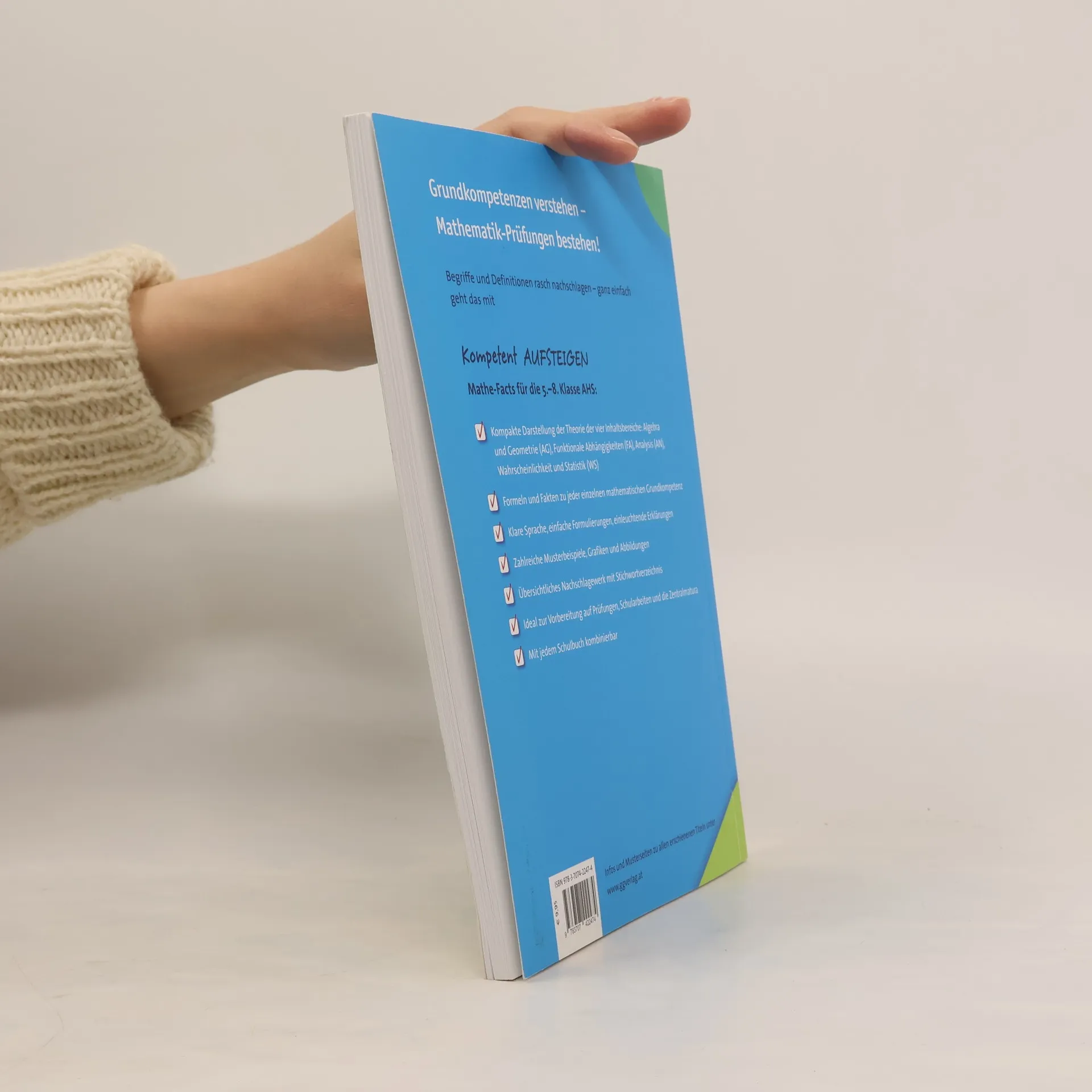 Grundkompetenzen verstehen – Mathematik-Prüfungen bestehen! Begriffe und Definitionen rasch nachschlagen – ganz einfach geht das mit Kompetent AUFSTEIGEN – Mathe-Facts für die 5.–8. Klasse AHS: - Kompakte Darstellung der Theorie der vier Inhaltsbereiche: Algebra und Geometrie (AG), Funktionale Abhängigkeiten (FA), Analysis (AN), Wahrscheinlichkeit und Statistik (WS) - Formeln und Fakten zu jeder einzelnen mathematischen Grundkompetenz - Klare Sprache, einfache Formulierungen, einleuchtende Erklärungen - Zahlreiche Musterbeispiele, Grafiken und Abbildungen - Übersichtliches Nachschlagewerk mit Stichwortverzeichnis - Ideal zur Vorbereitung auf Prüfungen, Schularbeiten und die Zentralmatura - Mit jedem Schulbuch kombinierbar