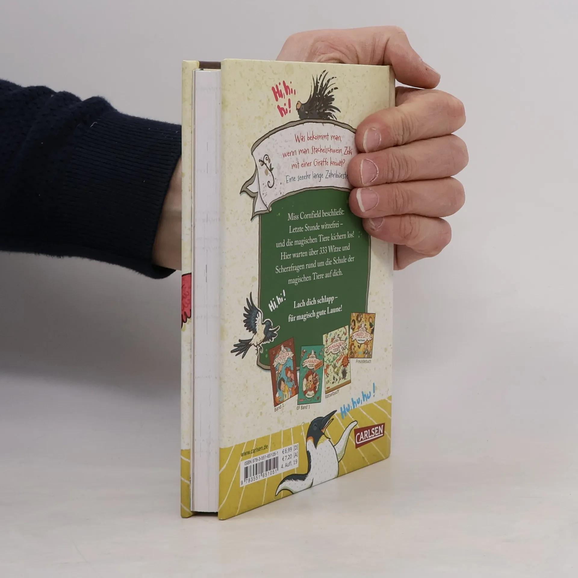 *** Was bekommt man, wenn man Stachelschwein Zeki mit einer Giraffe kreuzt? Eine seeehr lange Zahnbürste! *** Miss Cornfield beschließt: Letzte Stunde witzefrei – und die magischen Tiere kichern los! In diesem Witzebuch warten über 333 Witze und Scherzfragen rund um die Schule der magischen Tiere auf dich. Lach dich schlapp – für zauberhaft gute Laune! *** DIE SCHULE DER MAGISCHEN TIERE: Diese Schule birgt ein Geheimnis! Wer Glück hat, findet hier den besten Freund, den es auf der Welt gibt. Ein magisches Tier. Ein Tier, das sprechen kann. Wenn es zu dir gehört ... *** Endlich auf dem Stundenplan: magische Tierwitze, fröhliche Schülerwitze, tolle Lieblingswitze und coole Ferienwitze. *** Für echte Fans der Schule der magischen Tiere – von Mister Morrison empfohlen! *** So kommt zu Hause oder unterwegs garantiert keine Langeweile auf! ***