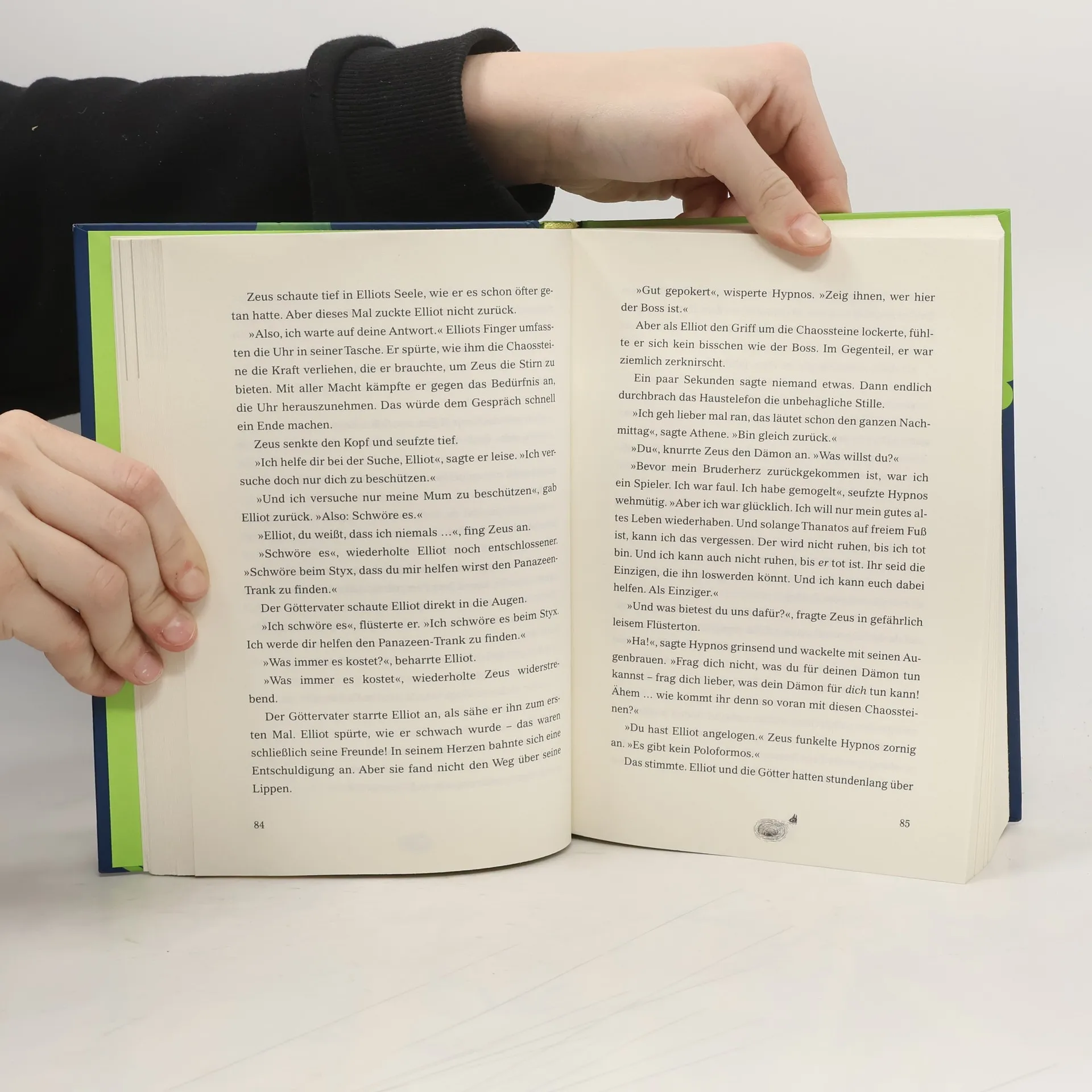 Hintern hoch! Die Götter auf großer Odyssee. Dass Elliot sein Zuhause mit jeder Menge griechischer Götter und der etwas nervigen Virgo teilt, ist kein Problem. Schließlich sind sie ein eingespieltes Team und müssen unbedingt den dritten Chaosstein finden, bevor Todesdämon Thanatos ihn in seine gierigen Finger bekommt. Die Welt zu retten ist eine echt wichtige Aufgabe! Doch Elliots Mum geht es immer schlechter und nur ein Elixier kann sie vor dem Schlimmsten bewahren. Also bricht Elliot zu einer gefährlichen Odyssee auf, die ihn bis ins Reich der Toten führt – und vor die schwerste Entscheidung seines Lebens stellt. Alle Bände der sagenhaft komischen Chaos-Götter-Serie: Die Götter sind los (Band 1) Götter allein zu Haus (Band 2) Götter an Bord (Band 3) Götter mit Schuss (Band 4)