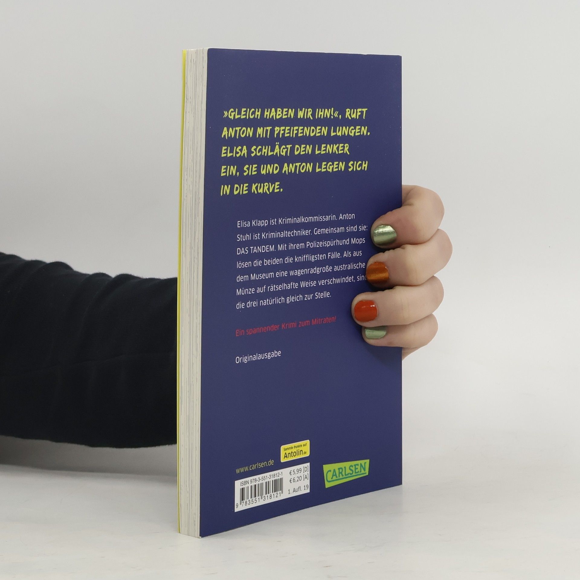 Elisa Klapp ist Kriminalkommissarin. Anton Stuhl ist Kriminaltechniker. Gemeinsam sind sie: DAS TANDEM. Nicht nur, weil sie ein Spitzen-Team sind, sondern auch, weil ihr Dienstfahrzeug das einzige Polizei-Tandem in ganz Deutschland ist. Pfeilschnell, umweltfreundlich und technisch voll auf Zack. Gemeinsam mit ihrem Polizeispürhund Mops lösen Elisa und Anton die kniffligsten Kriminalfälle. Als aus dem Museum eine wagenradgroße australische Münze auf rätselhafte Weise verschwindet, sind die drei natürlich gleich zur Stelle. *** Kniffliger Rätselspaß, ideal für die Ferien!