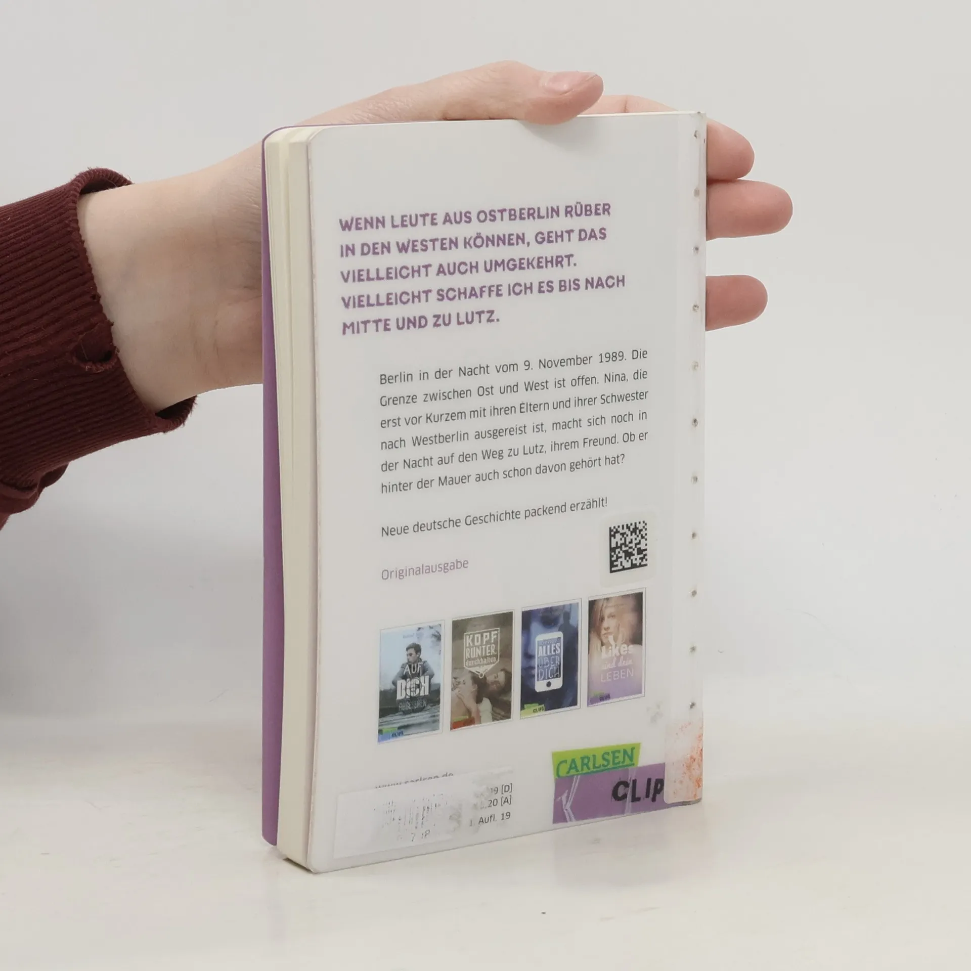 Gefühlvoll, lehrreich und leicht zu lesen Ostberlin im Frühjahr 1988: Nina und Lutz sind verliebt und verbringen so viel Zeit wie möglich miteinander. Sie wissen, dass es plötzlich zu Ende sein kann, denn Ninas Eltern haben einen Ausreiseantrag aus der DDR gestellt. Und tatsächlich muss Nina Ostberlin verlassen, ohne dass sie sich von Lutz verabschieden kann. Aber die beiden schreiben sich Briefe und glauben fest daran, dass sie sich im Westen wiedersehen. Und dann hört Lutz in der Nacht vom 9. November 1989, dass die Grenze offen ist und macht sich auf den Weg zu Nina. Informativ und mitreißend Die Bücher der „ Carlsen Clips “-Reihe bieten eine einzigartige Mischung. Sie sprechen Themen an, die in der Lebenswelt von Teenagern eine Rolle spielen. Und sie bereiten geschichtliches Wissen unterhaltsam und jugendgerecht auf. Durch ihren lockeren Schreibstil und die kompakte Länge eignen sich die Kurzromane ideal als Unterrichtsmaterial und machen auch leseunwilligen Jugendlichen den Zugang leicht. „Wir sehen uns im Westen“ erzählt von einer Liebe in Umbruchszeiten. Neben der bewegenden und spannungsgeladenen Geschichte erfahren die Leser*innen viel über die Teilung Berlins, die politischen Verhältnisse in der damaligen DDR sowie den Zeitgeist der ausgehenden 80er-Jahre. So macht Geschichtsunterricht Spaß!