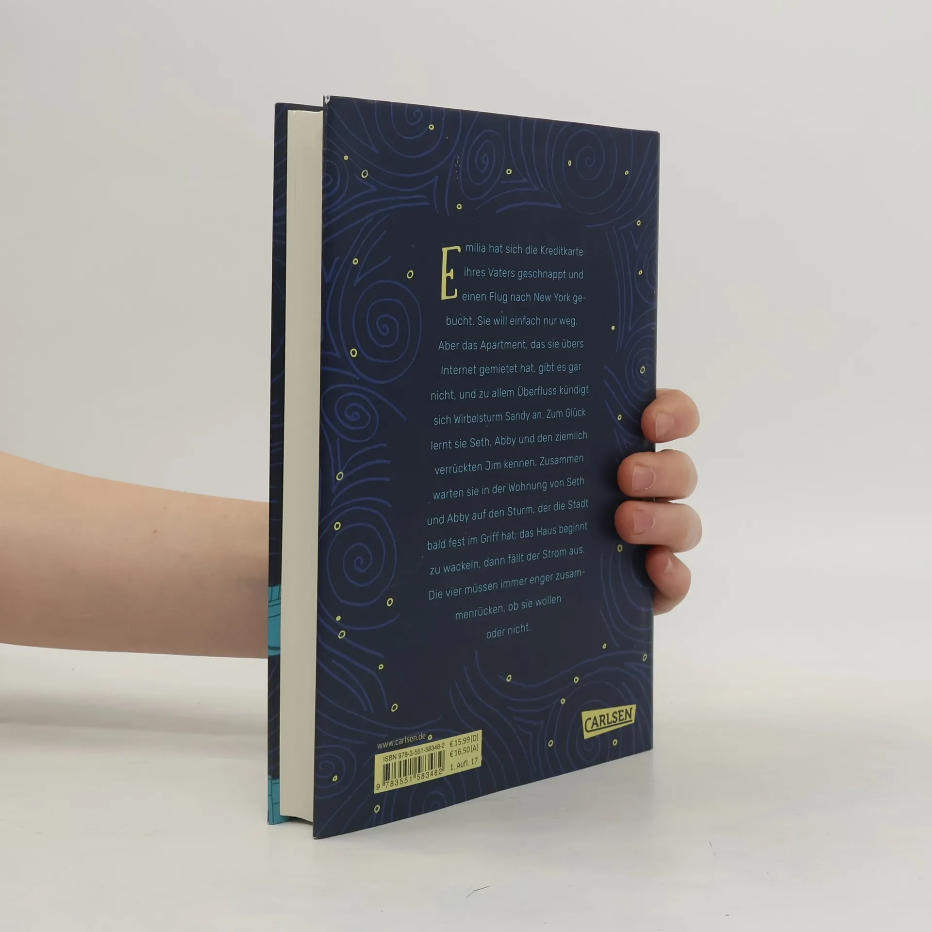 Eine spannende Coming-of-Age-Geschichte vor der einmaligen Kulisse von New York. Emilia hat sich die Kreditkarte ihres Vaters geschnappt und einen Flug nach New York gebucht. Sie will einfach nur weg. Aber das Apartment, das sie übers Internet gemietet hat, gibt es gar nicht und zu allem Überfluss kündigt sich Wirbelsturm Sandy an. Zum Glück lernt sie Seth, Abby und den ziemlich verrückten Jim kennen. Zusammen finden sie eine Bleibe in SoHo. Inzwischen hat der Sturm die Stadt fest im Griff: das Haus beginnt zu wackeln, dann fällt der Strom aus. Die vier müssen immer enger zusammenrücken, ob sie wollen oder nicht.