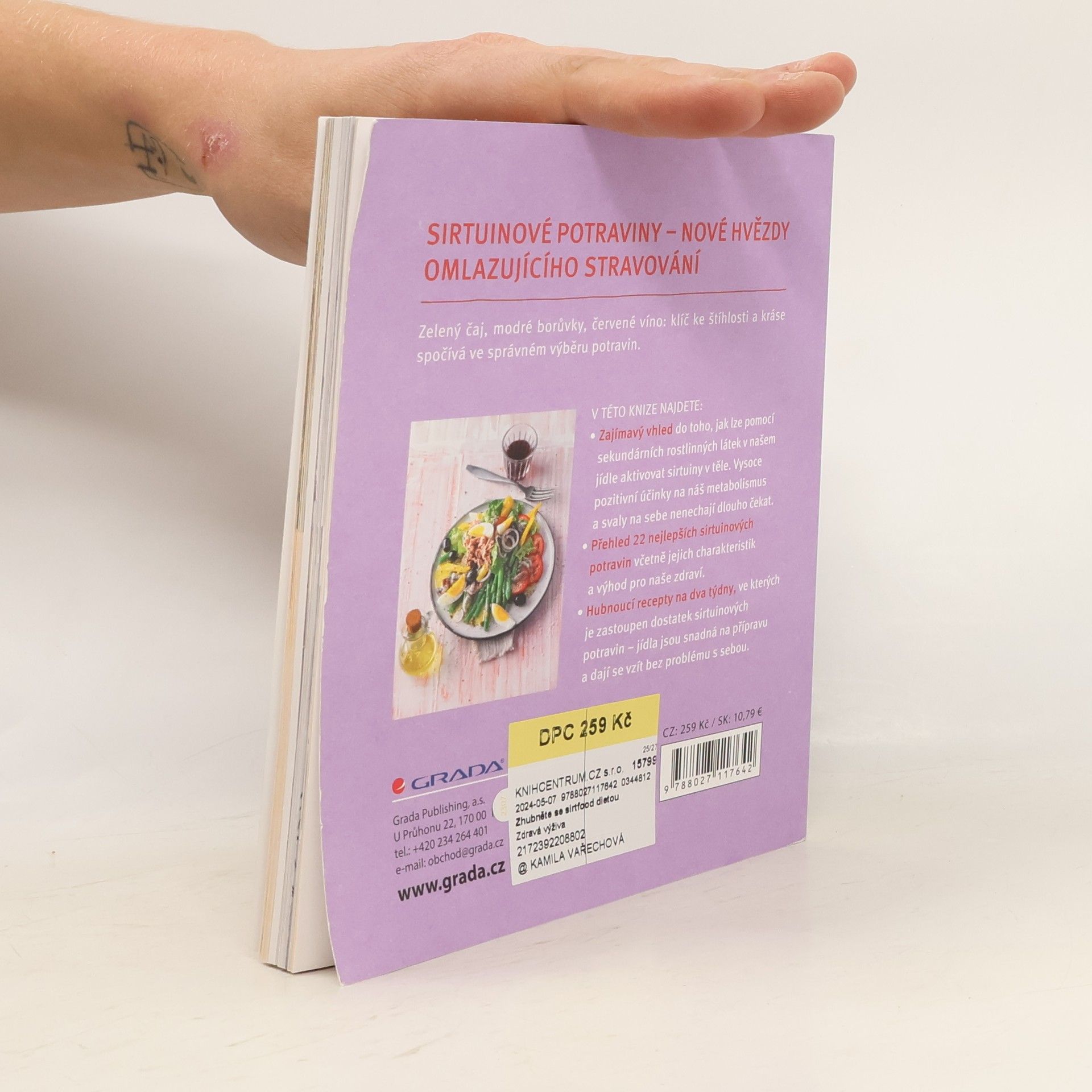 SIRTUINOVÉ POTRAVINY – NOVÉ HVĚZDY OMLAZUJÍCÍHO STRAVOVÁNÍ. Zelený čaj, modré borůvky, červené víno: klíč ke štíhlosti a kráse spočívá ve správném výběru potravin. V TÉTO KNIZE NAJDETE: Zajímavý vhled do toho, jak lze pomocí sekundárních rostlinných látek v našem jídle aktivovat sirtuiny v těle. Vysoce pozitivní účinky na náš metabolismus a svaly na sebe nenechají dlouho čekat. Přehled 22 nejlepších sirtuinových potravin včetně jejich charakteristik a výhod pro naše zdraví. Hubnoucí recepty na dva týdny, ve kterých je zastoupen dostatek sirtuinových potravin – jídla jsou snadná na přípravu a dají se vzít bez problému s sebou.