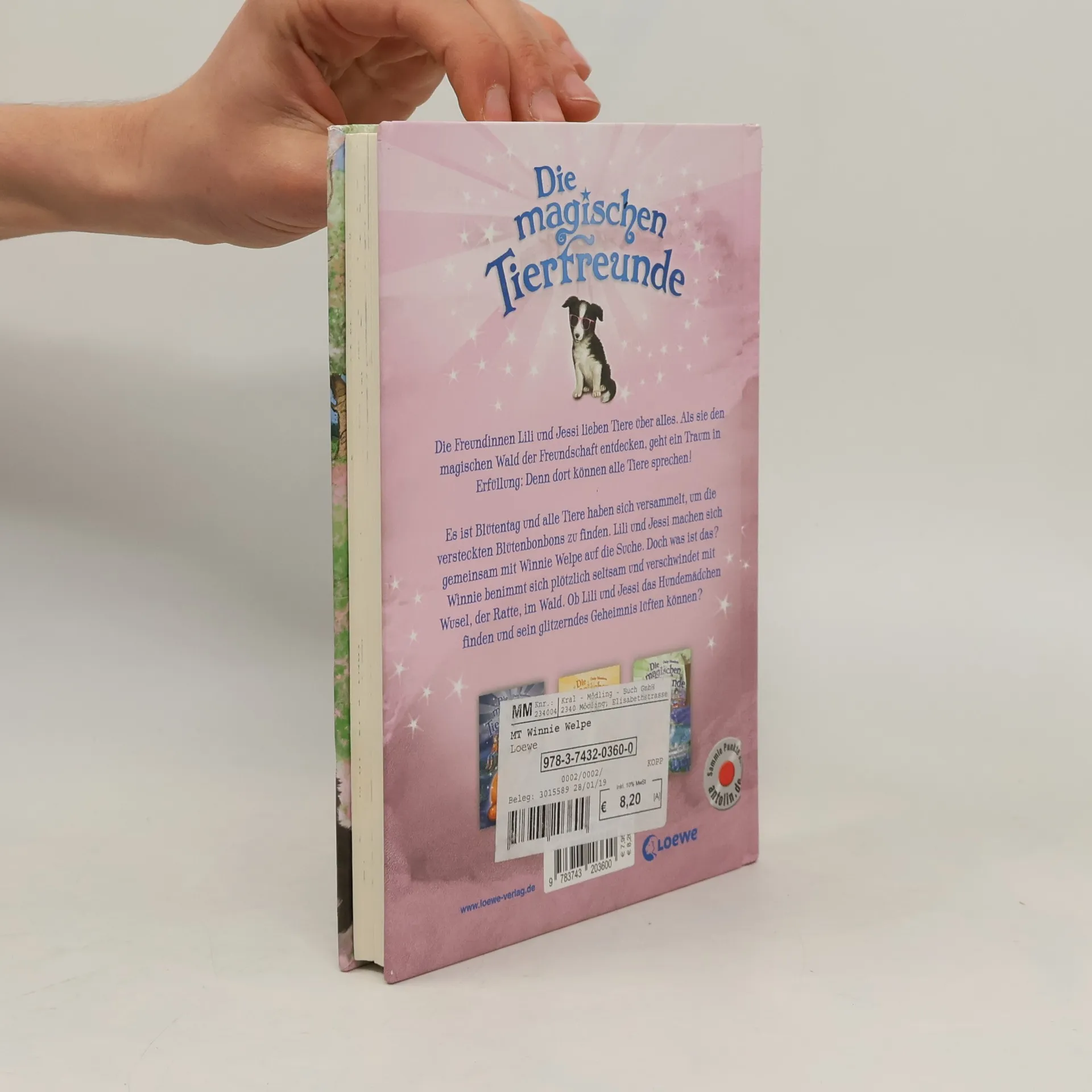 Das Buch ist bei deiner Buchhandlung vor Ort und bei vielen Online-Buchshops erhältlich! Die Freundinnen Lili und Jessi lieben Tiere über alles. Als sie den magischen Wald der Freundschaft entdecken, geht ein Traum in Erfüllung: Denn dort können alle Tiere sprechen! Es ist Blütentag im Wald der Freundschaft und alle Tiere haben sich versammelt, um die versteckten Blütenbonbons zu finden. Das Hundemädchen Winnie Welpe begibt sich mit Jessi und Lili gemeinsam auf die Suche. Doch was ist das? Winnie benimmt sich plötzlich seltsam und verschwindet mit Wusel, der Ratte, im Wald. Ob Lili und Jessi das Hundemädchen finden und sein glitzerndes Geheimnis lüften können? Magische und zauberhafte Geschichten mit zahlreichen liebenswerten Illustrationen, die jedes Kinderherz ab 7 Jahren höher schlagen lassen. Die Freundinnen Lili und Jessi folgen einer geheimnisvollen Katze in den Wald der Freundschaft. Dort können alle Tiere sprechen und gemeinsam erleben sie spannende Abenteuer. Durch die kurzen Kapitel eignet sich die Reihe besonders für Leseanfänger. Tierpflegetipps runden die Geschichten um Die magischen Tierfreunde perfekt ab. Dieses Buch ist auf Antolin. de gelistet.