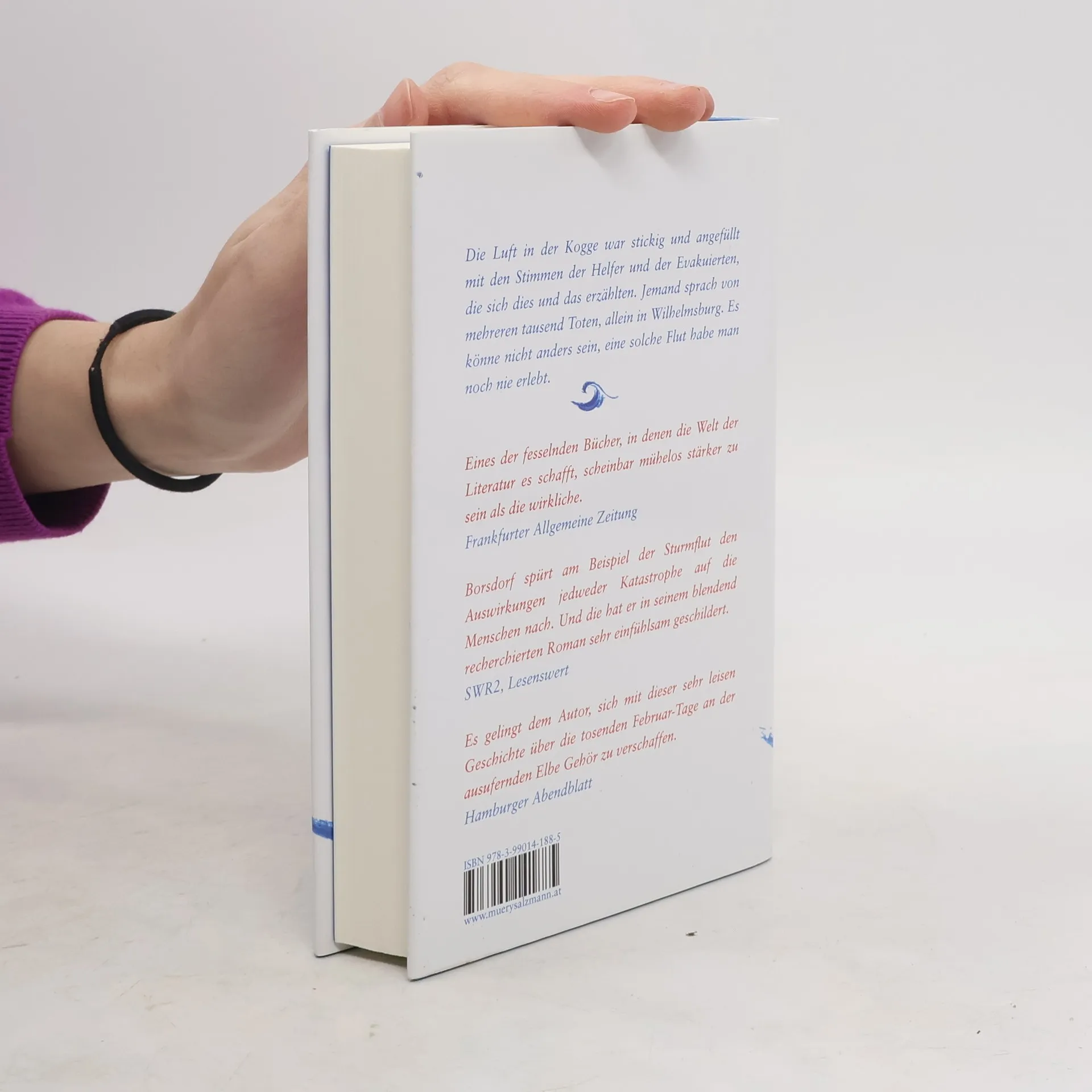 Im Februar 1962 wird Hamburg von der größten Sturmflut seiner Geschichte heimgesucht. Man trifft sich wie immer in Novotnys Hafenkneipe; ein Korn kann bei dem Wetter nicht schaden. Hier in der „Kogge“ hat der junge Karl Blomstedt seine halbe Kindheit zugebracht, weil seine Mutter die Köchin ist. Nun müsste er längst vom Hafen zurück sein, das Wasser steht schon drei Meter über Normalnull. Der Bücherverschlinger soll wie sein Vater Hafenarbeiter werden, obwohl er dafür nicht geeignet scheint; aber fürs Lesen hat man in der Welt der Schauerleute, Kaischuppen und Speicher nicht viel übrig. Die Ehe der Eltern, die Menschen rund um sie, die Hafengeschichten werfen verstörende Schatten auf Karl, just als er der ersten Liebe begegnet. Im sprichwörtlichen und metaphorischen Sinn brechen die Deiche ... Wie kunstvoll und zugleich schlicht der Autor die Welt der Kogge mit der Katastrophennacht verwebt, ist ein literarisches Ereignis! Das Romanmanuskript hat seinem Autor bereits mehrere Stipendien und die Teilnahme an der Autorenwerkstatt Prosa 2014 des Literarischen Colloquiums Berlin eingebracht.