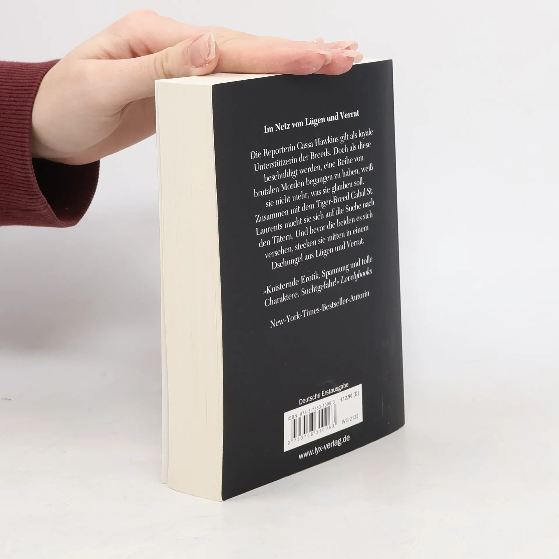Im Netz von Lügen und Verrat Die Reporterin Cassa Hawkins gilt als loyale Unterstützerin der Breeds. Doch als diese beschuldigt werden, eine Reihe von brutalen Morden begangen zu haben, weiß sie nicht mehr, was sie glauben soll. Zusammen mit dem Tiger-Breed Cabal St. Laurents macht sie sich auf die Suche nach den Tätern. Und bevor die beiden es sich versehen, stecken sie mitten in einem Dschungel aus Lügen und Verrat. "Knisternde Erotik, Spannung und tolle Charaktere. Suchtgefahr!" Lovelybooks Band 14 der erfolgreichen Breeds-Serie von Bestseller-Autorin Lora Leigh