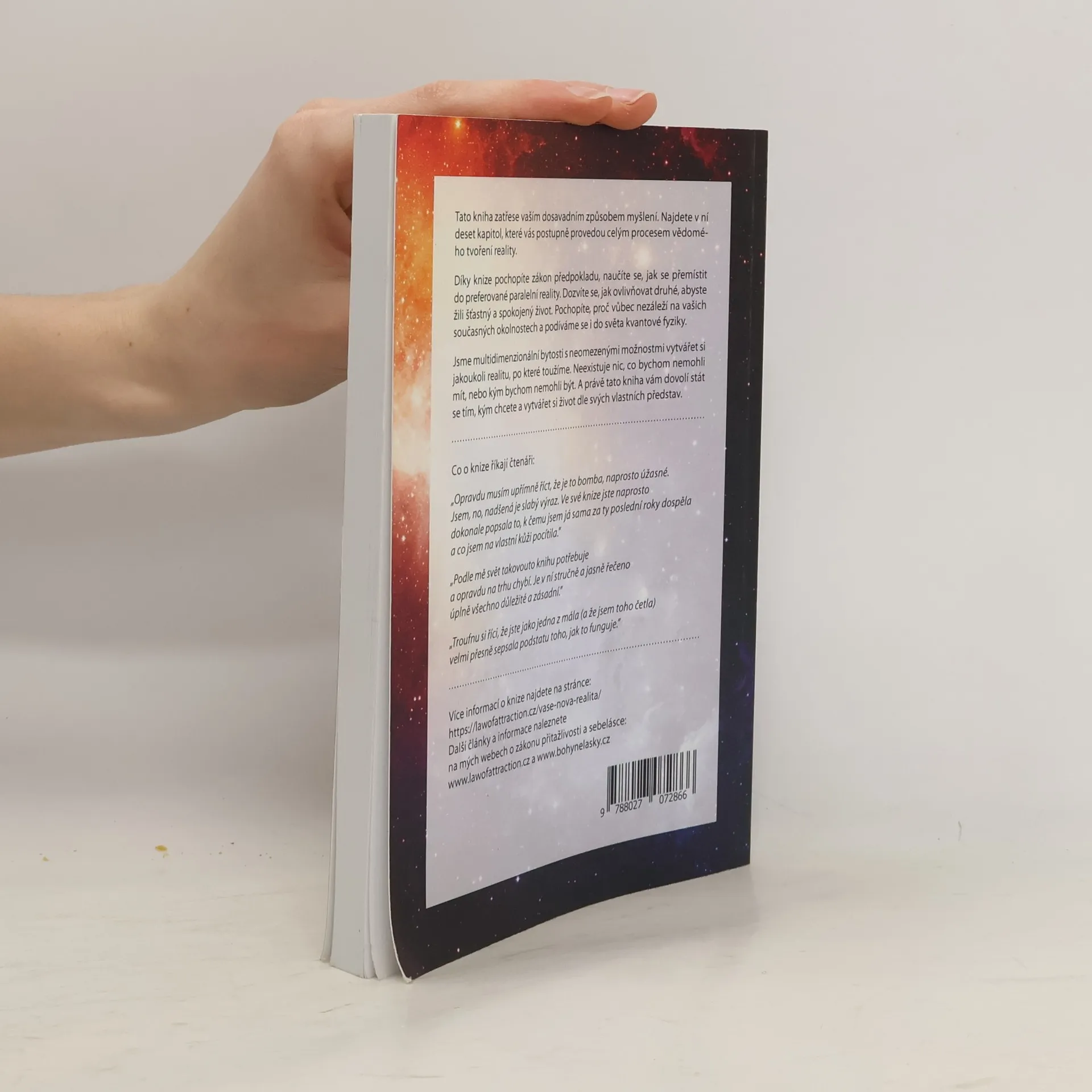 Tato kniha zatřese vaším dosavadním způsobem myšlení. Najdete v ní deset kapitol, které vás postupně provedou celým procesem vědomého tvoření reality. Díky knize pochopíte zákon předpokladu, naučíte se, jak se přemístit do preferované paralelní reality. Dozvíte se, jak ovlivňovat druhé, abyste žili šťastný a spokojený život. Pochopíte, proč vůbec nezáleží na vašich současných okolnostech a podíváme se i do světa kvantové fyziky. Jsme multidimenzionální bytosti s neomezenými možnostmi vytvářet si jakoukoli realitu, po které toužíme. Neexistuje nic, co bychom nemohli mít, nebo kým bychom nemohli být. A právě tato kniha vám dovolí stát se tím, kým chcete a vytvářet si život dle svých vlastních představ.