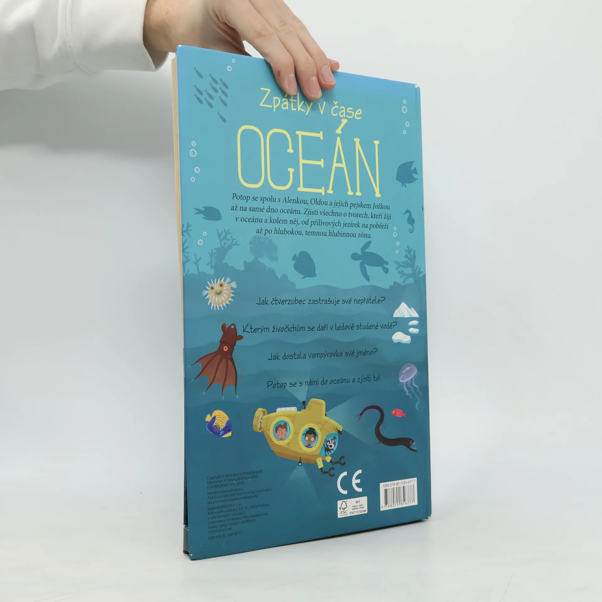 Potop se spolu s Alenkou, Oldou a jejich pejskem Jožkou, až na samé dno oceánu. Zjisti všechno o tvorech, kteří žijí v oceánu a kolem něj, od přílivových jezírek na pobřeží až po hlubokou, temnou hlubinnou zónu. Zajímá tě například: Jak čtverzubec zastrašuje své nepřátele? Jak dostala vampýrovka své jméno? Kterým živočichům se daří v ledově studené vodě? Potop se s námi do oceánu a zjisti to!