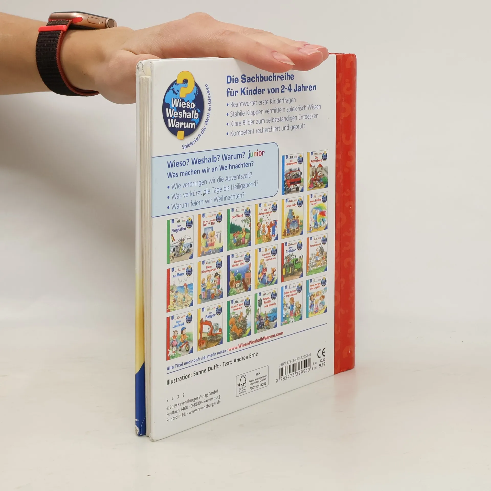 Dieses erste Sachbuch über Weihnachten zeigt alltagsnah, wie sich eine Familie auf die Festtage vorbereitet. Zur Adventszeit gehören die schönsten Bräuche: Wir dekorieren unser Zuhause, hängen den Adventskalender auf und stellen die Nikolausstiefel vor die Tür. Wir basteln, backen und bummeln über den Weihnachtsmarkt. Und warum feiern wir Weihnachten? Das erfahren Kinder beim Besuch eines Krippenspiels. Wieso? Weshalb? Warum? junior Die Sachbuchreihe für Kinder von 2-4 Jahren Jeden Tag entdecken Kinder etwas Neues – und haben viele Fragen. Wann kommt die Feuerwehr? Was machen die Tiere im Winter? Warum muss ich Zähne putzen? Die beliebte Sachbuchreihe Wieso? Weshalb? Warum? junior beantwortet die Fragen der Kinder auf Augenhöhe. Sie beleuchtet unterschiedlichste Themen aus ihrer Alltags- und Interessenswelt altersgerecht und mit viel Liebe zum Detail. Die Reihe ist speziell auf kleine Hände und die Bedürfnisse der Kleinsten angepasst. Klare und liebevolle Bilder, kurze Sachtexte sowie handliche Klappen, die Bewegungen veranschaulichen und überraschende und lustige Einblicke gewähren, ermöglichen Kindern, sich ihre Themen selbst zu erschließen. Der Spaß am eigenhändigen Entdecken, die liebevolle Umsetzung und die hochwertige Ausstattung garantieren langanhaltende Freude an jedem Buch.