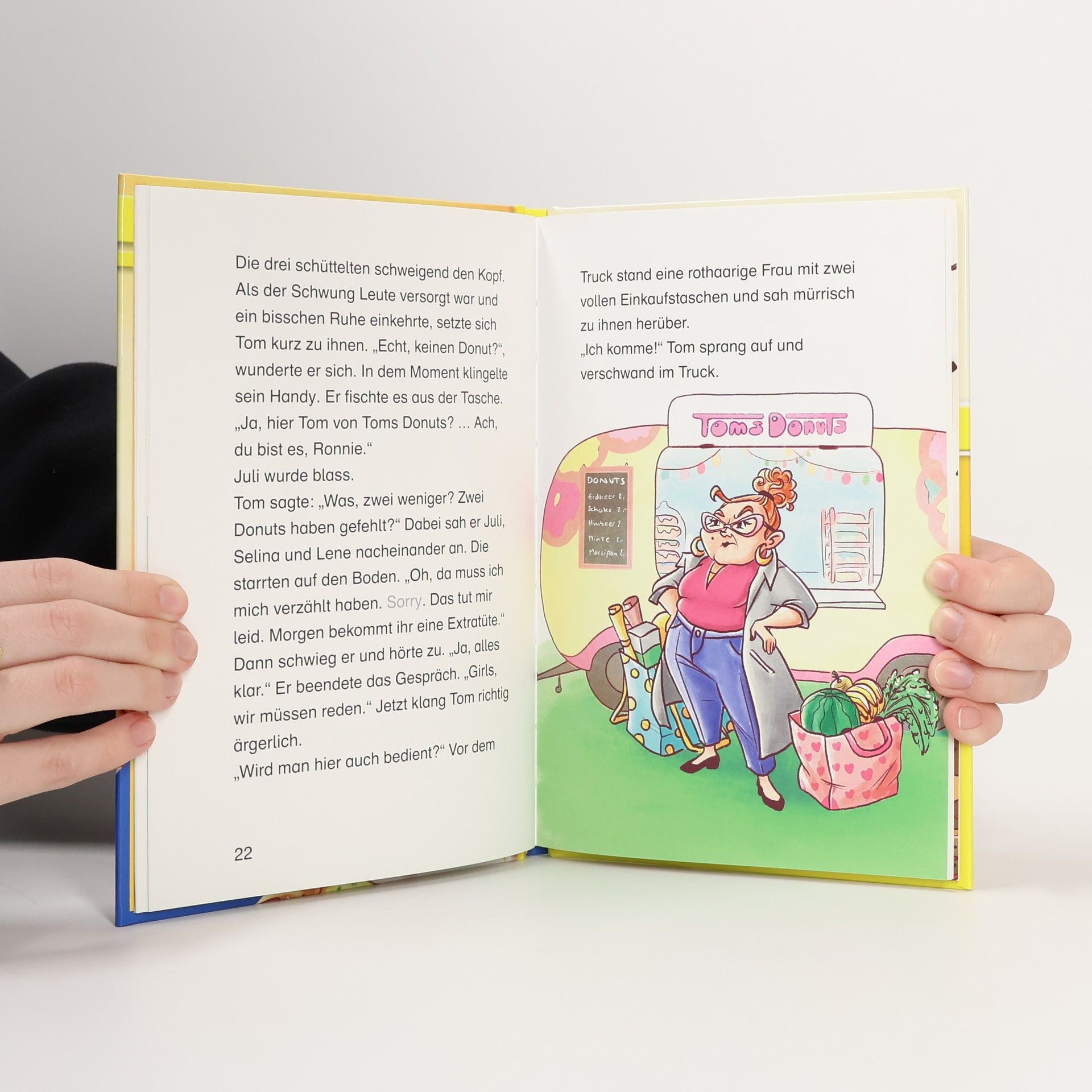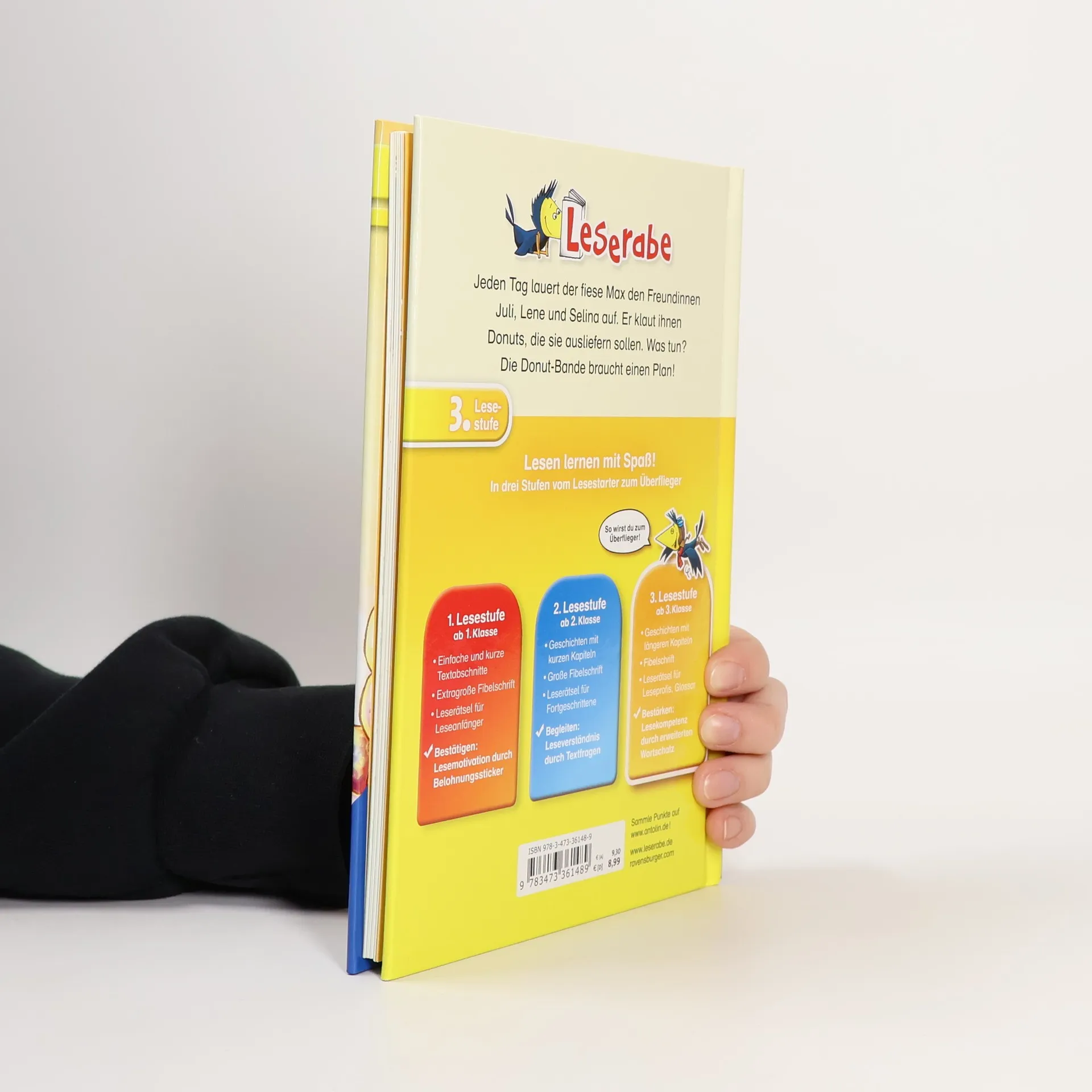 Verflixt und zugenäht! Max stiehlt den Freundinnen Juli, Lene und Selina Donuts, die sie für Julis Bruder Tom ausliefern sollen. Die Donut-Bande braucht einen Plan! Die Reihe Leserabe – 3. Lesestufe richtet sich an Leseprofis ab der 3. Klasse und fördert die Lesefähigkeit von Kindern ab 8 Jahren durch spannende Geschichten mit längeren Kapiteln und erweitertem Wortschatz. Schwierige Wörter werden in einem Glossar erklärt, und die Bücher sind von der Stiftung Lesen empfohlen sowie bei Antolin gelistet. Es ist Sommer und der erste Ferientag. Juli genießt ihren ersten Donut des Tages und trifft sich mit ihren Freundinnen Selina und Lene an Toms Donut-Truck. Tom, der die besten Donuts von Sonnenstein bäckt, steht unter Druck, um genug Gewinn zu erzielen und seinen Imbisswagen zu halten. Juli und ihre Freundinnen wollen ihm helfen, indem sie Donuts per Fahrrad ausliefern. Doch Max und seine Freunde machen ihnen einen Strich durch die Rechnung und stehlen Donuts. Tom erhält Kundenbeschwerden, und die Donut-Bande muss handeln. Sie kreieren die „Donuts der Hölle“ mit Pfeffer, Chili und Peperoni, um Max und seinen Freunden das Klauen zu vermiesen. Die Jungs haben die Lektion gelernt: Mit der Donut-Bande legt man sich besser nicht an!