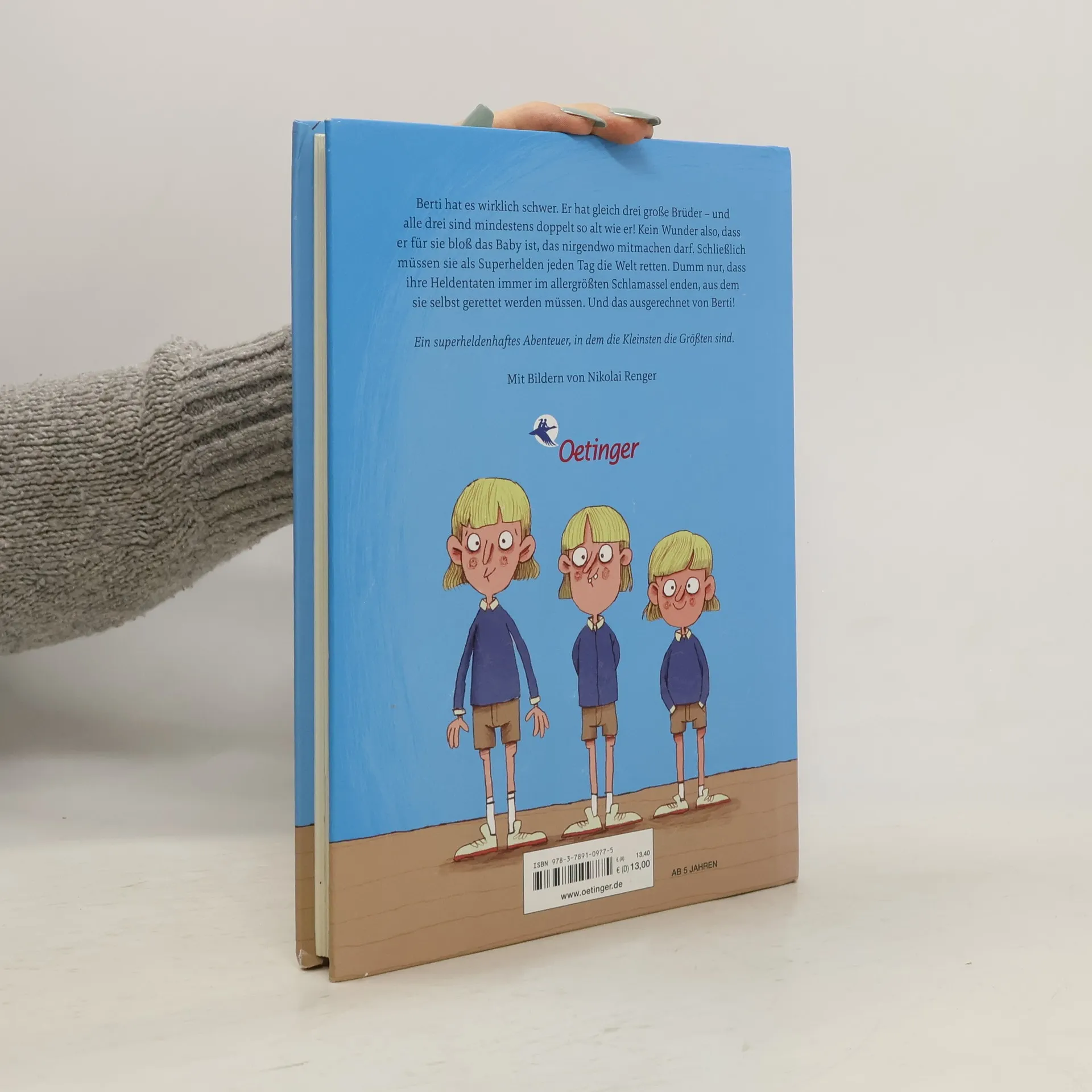 Geschwisterspaß zwischen Herdmanns und Krachmacherstraße: Der fünfjährige Berti hat es wirklich schwer. Er hat gleich drei große Brüder – und alle drei sind mindestens doppelt so alt wie er! Kein Wunder also, dass er für sie bloß das Baby ist, das nirgendwo mitmachen darf. Schließlich müssen sie als Superhelden jeden Tag die Welt retten. Dumm nur, dass ihre Heldentaten immer im allergrößten Schlamassel enden, aus dem sie selbst gerettet werden müssen. Und das ausgerechnet von Berti!