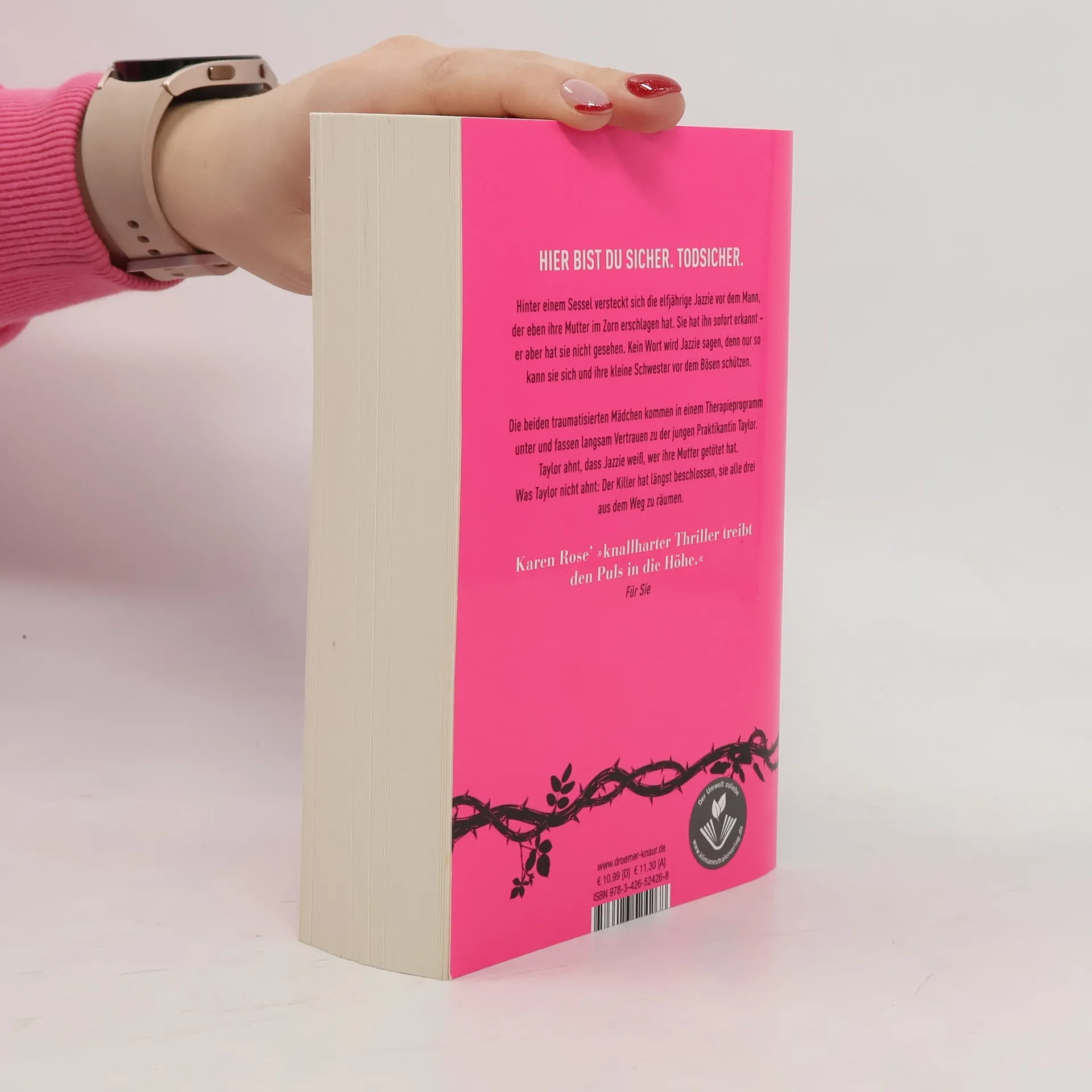 Furiose Spannung, rasante Action und ein Hauch Romantik prägen den 5. Thriller der Baltimore-Reihe von Bestseller-Autorin Karen Rose. Die elfjährige Jazzie versteckt sich hinter einem Sessel, während der Mann, der ihre Mutter im Zorn erschlagen hat, den Raum durchkämmt. Sie hat ihn erkannt, doch er sieht sie nicht. Ab diesem Moment schweigt Jazzie, überzeugt, dass dies ihre einzige Chance ist, sich und ihre Schwester zu schützen. Taylor Dawson ist fest entschlossen, die Wahrheit über ihren Vater Clay Maynard herauszufinden, den ihre Mutter als Monster bezeichnete. Clay arbeitet als Sicherheitschef in einem Programm für traumatisierte Kinder in Baltimore, und Taylor sichert sich dort ein Praktikum. Während sie sich Clay nähert, entwickelt sie auch eine Verbindung zu ihrem Kollegen Ford Elkhart. Besonders zu zwei kleinen Mädchen, die den Mord an ihrer Mutter miterlebt haben und seither verstummt sind, fühlt sie sich hingezogen. Taylor vermutet, dass Jazzie weiß, wer für den Mord verantwortlich ist. Doch der Killer hat bereits Pläne geschmiedet, um die drei zum Schweigen zu bringen. Mit der Baltimore-Reihe hat Karen Rose ein Millionen-Publikum begeistert. "Temporeich, unglaublich spannend, die Charaktere sind überzeugend, die Mordfälle spektakulär und es gibt sogar ein bisschen Romantik – eine perfekte Mischung!" urteilt Radio Euroherz. Die Reihe umfasst sechs Thriller, darunter "Todesherz" und "Todeskind".