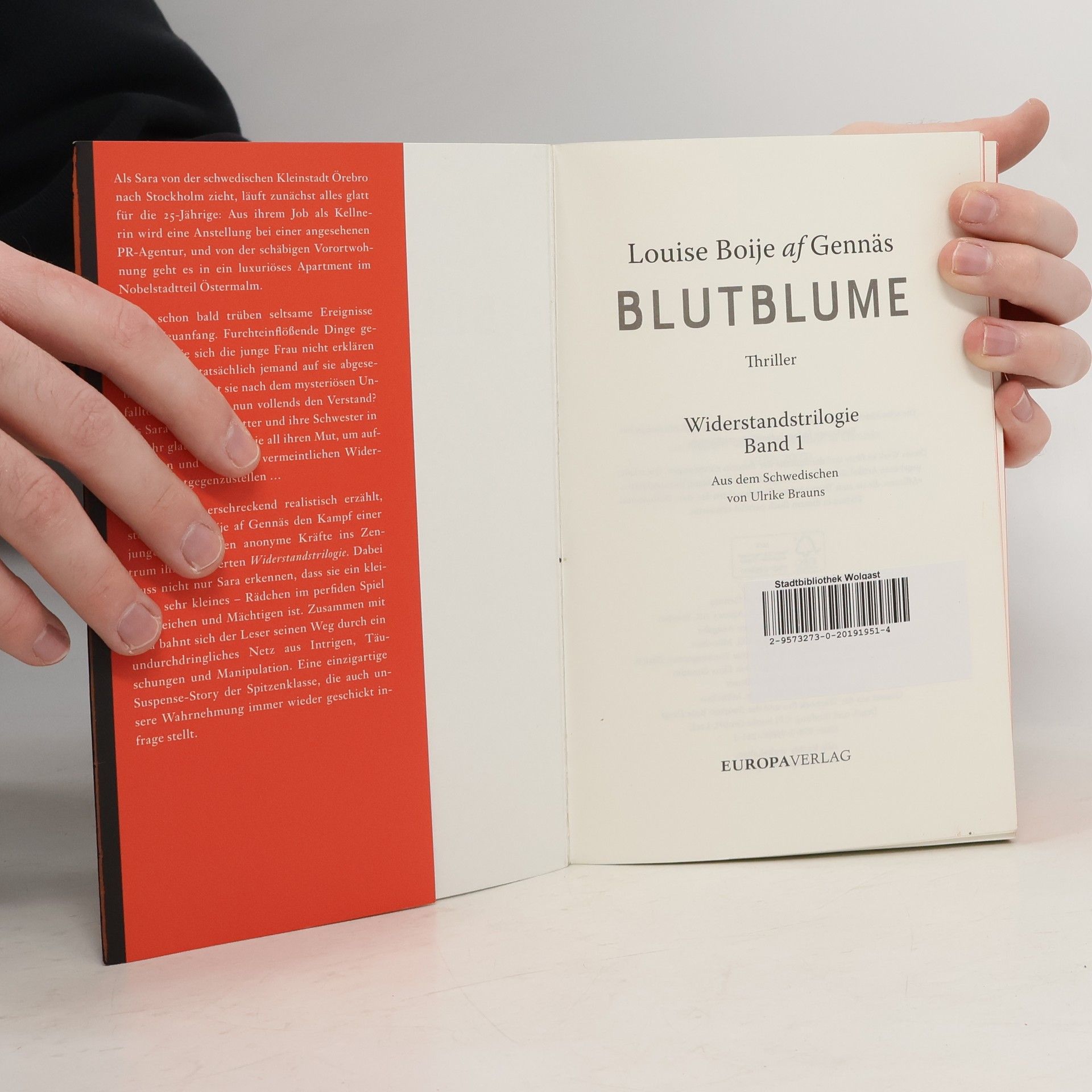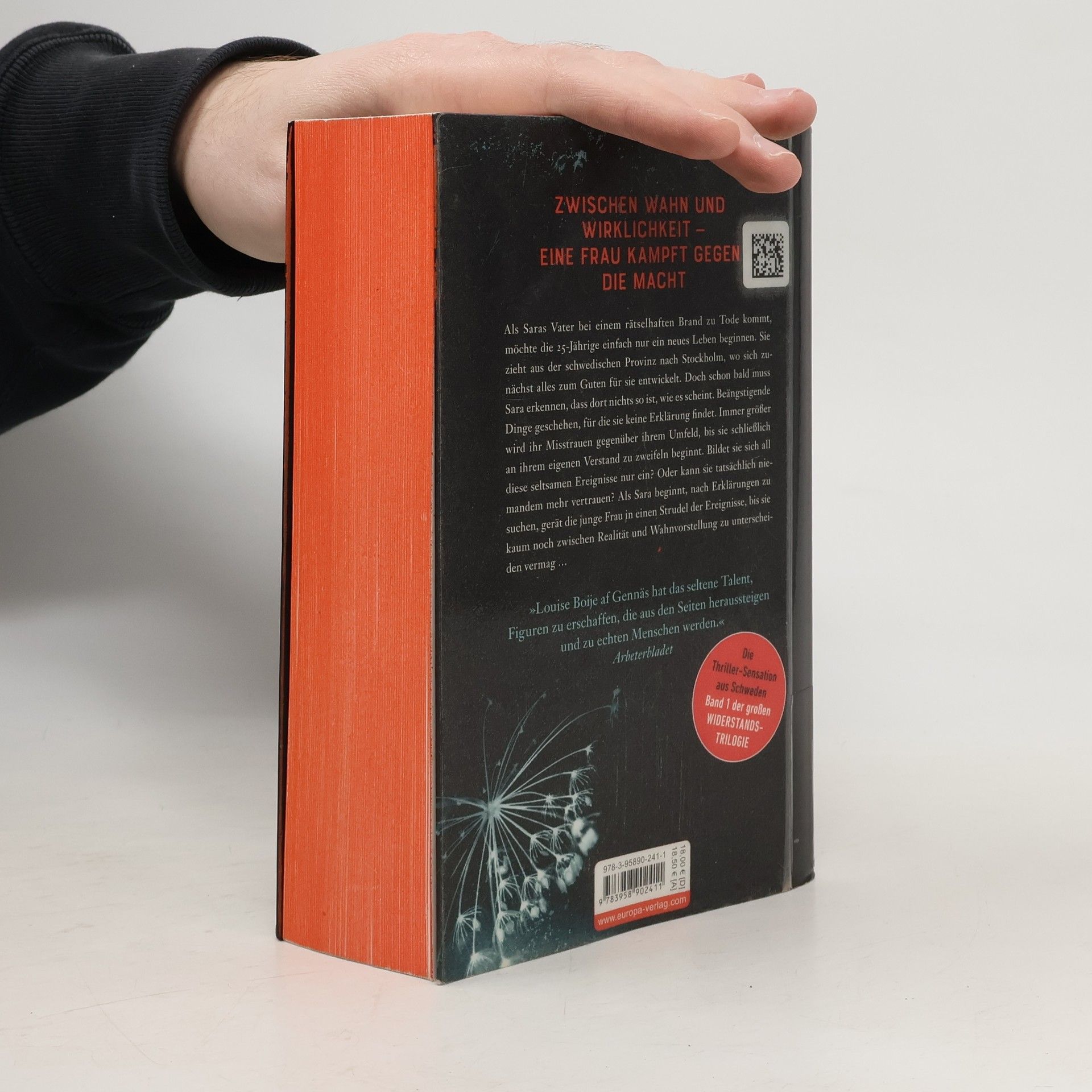 Als Saras Vater bei einem rätselhaften Brand zu Tode kommt, zieht sie von der schwedischen Kleinstadt Örebro nach Stockholm. Dort läuft zunächst alles glatt für die 25 Jährige: Aus ihrem Job als Kellnerin wird eine Anstellung bei einer angesehenen PR-Agentur, und von der schäbigen Vorortwohnung geht es in ein luxuriöses Apartment im Nobelstadtteil Östermalm. Sara ist glücklich, dass sich in ihrem Leben endlich alles zum Guten gewendet hat. Doch schon bald muss Sara erkennen, dass nichts so ist, wie es scheint. Beängstigende Dinge geschehen, für die sie keine Erklärung findet. Immer größer wird ihr Misstrauen gegenüber ihrem Umfeld, bis sie schließlich an ihrem eigenen Verstand zu zweifeln beginnt. Bildet sie sich all diese seltsamen Ereignisse nur ein? Oder kann sie tatsächlich niemandem mehr trauen? Packend und erschreckend realistisch erzählt, stellt Louise Boije af Gennäs den Kampf einer jungen Frau gegen anonyme Kräfte ins Zentrum ihrer Widerstandstrilogie. In drei Bänden mischt sich das psychologische Verwirrspiel von „Girl on the train“ mit den verschwörungstheoretischen Ansätzen der „Millennium“-Trilogie und macht Louise Boije af Gennäs’ Werk zu einer einzigartigen Suspense-Reihe, die man erst dann aus der Hand legen kann, wenn Sara erfahren hat, was wirklich hinter all den seltsamen Ereignissen steckt.