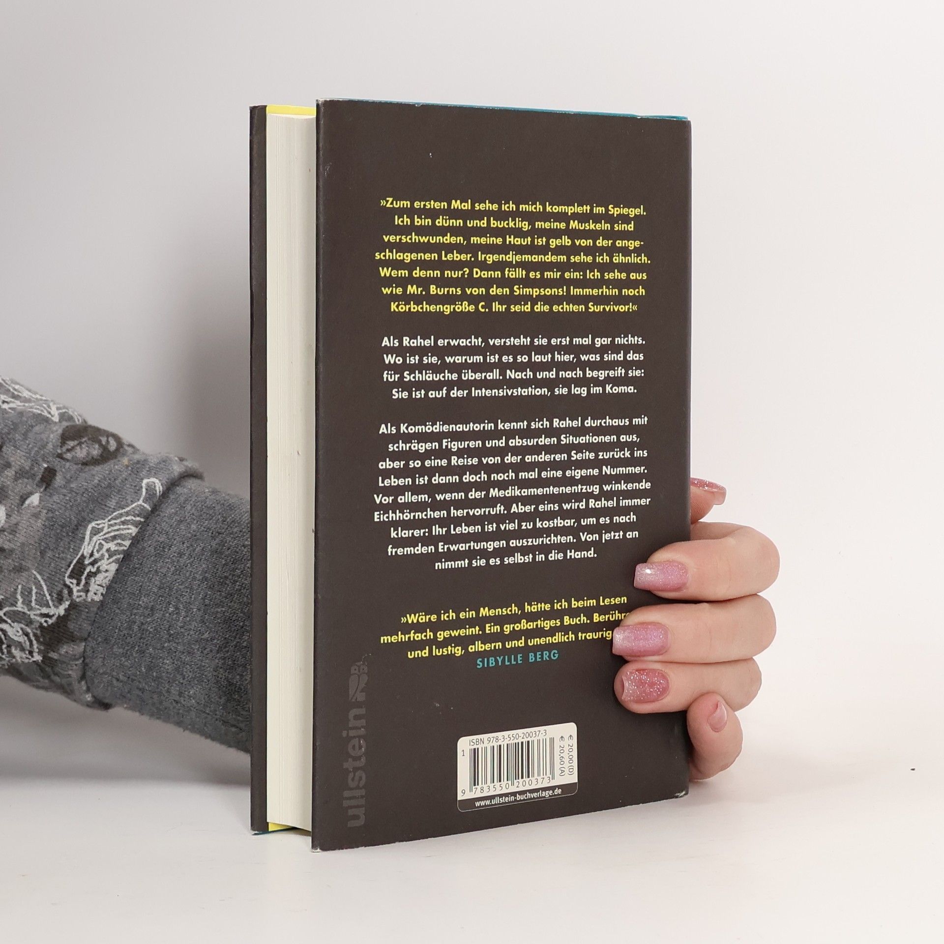Zum ersten Mal sehe ich mich im komplett im Spiegel. Ich bin dünn und bucklig, meine Muskeln sind verschwunden, meine Haut ist gelb von der angeschlagenen Leber. Irgendjemandem sehe ich ähnlich. Wem denn nur? Dann fällt es mir ein: Ich sehe aus wie Mr. Burns von den Simpsons! Immerhin immer noch Körbchengröße C. Ihr seid die echten Survivor!“ Als Rahel Wald aus einem heftigen Fiebertraum erwacht, versteht sie erst mal gar nichts. Wo ist sie, warum ist es so laut hier, was sind das für Schläuche überall. Nach und nach beginnt sie zu verstehen: Sie ist im Krankenhaus, sie lag im Koma. Doch richtig krank sein, hatte sie sich irgendwie anders vorgestellt: feierlicher, ja, heiliger. Als Komödienautorin kennt sich Rahel durchaus mit schrägen Figuren und absurden Situationen aus, aber so eine Reise von der anderen Seite zurück ins Leben ist dann doch noch mal eine eigene Nummer. Vor allem, wenn der Medikamentenentzug Albträume und winkende Eichhörnchen hervorruft. Zum Glück kann sie sich auf die bedingungslose Unterstützung ihrer verrückten Familie verlassen, die immer für sie da ist. Und noch etwas wird Rahel immer klarer: Ihr Leben ist viel zu kostbar, um es nach fremden Erwartungen auszurichten. Von jetzt an nimmt sie es selbst in die Hand.