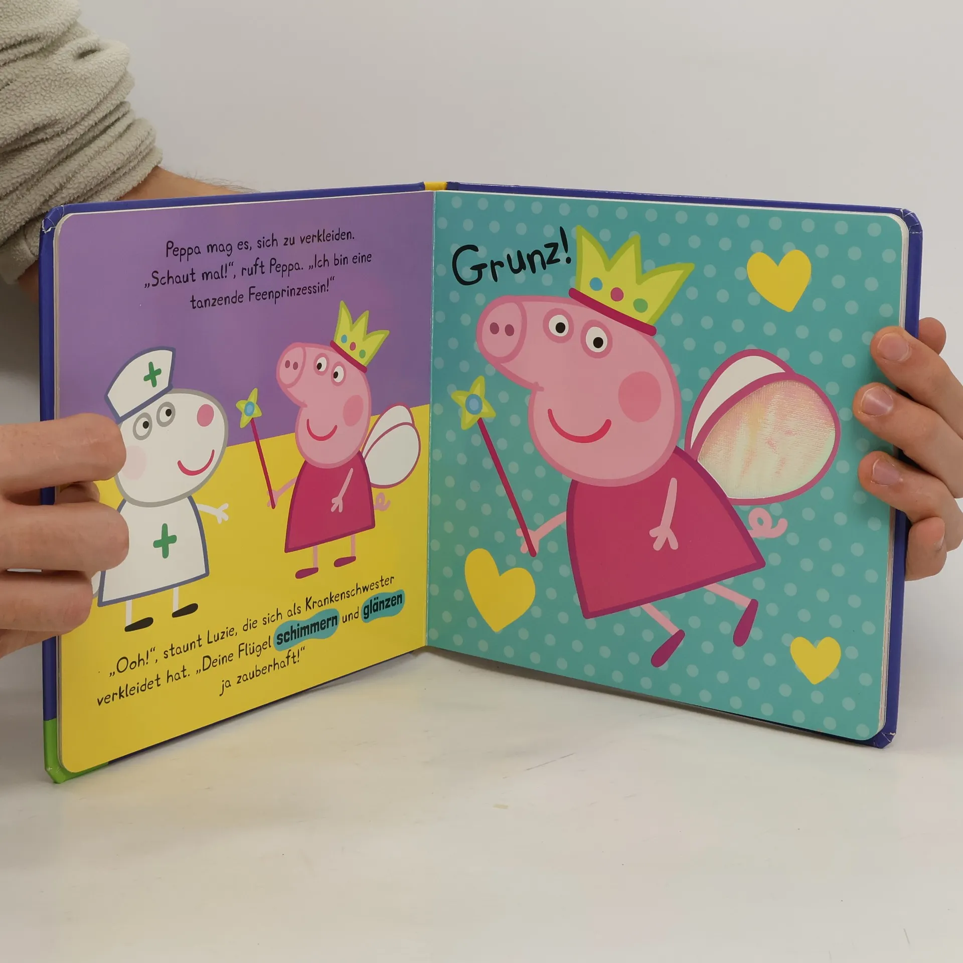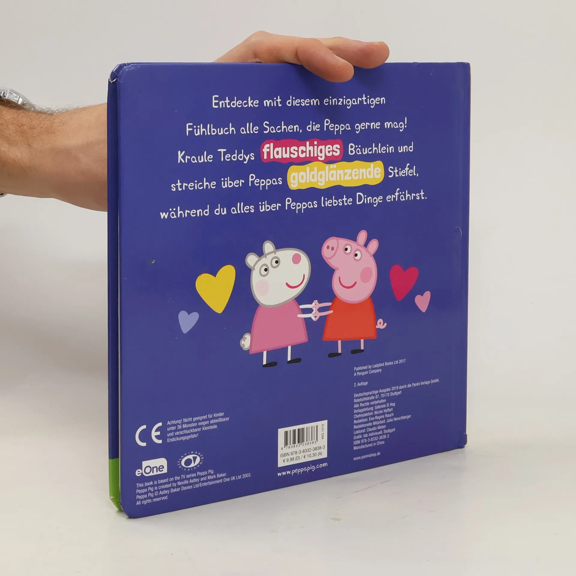 Entdecke mit diesem einzigartigen Fühlbuch alle Sachen, die Peppa gerne mag! Kraule Teddys flauschiges Bäuchlein und streiche über Peppas goldglänzende Stiefel, während du alles über Peppas liebste Dinge erfährst.
