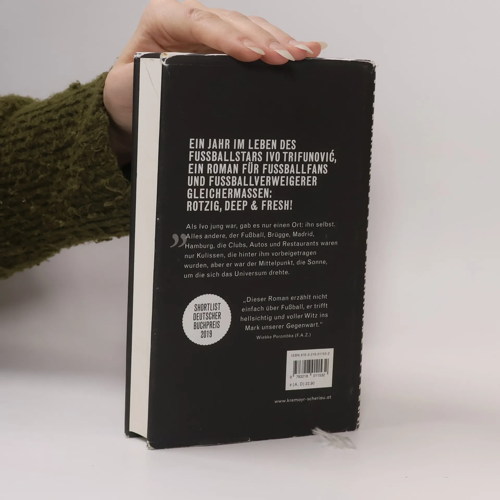 Nominiert für die Shortlist des Deutschen Buchpreises 2019Gewinner des Förderpreises zum Bremer Literaturpreis 2020 Ivo wusste immer schon, dass er besonders ist. Besonders cool, besonders talentiert, besonders attraktiv. Alle wussten es, seine Familie, seine Jugendtrainer, seine Freunde im Käfig. Jetzt ist er einer der bestbezahlten Fußballer der Welt. Er verdient 100.000 Euro in der Woche, fährt einen Bugatti, hat eine Ehefrau und zwei Kinder, die er über alles liebt. Doch als seine Jugendliebe Mirna ins Spiel kommt, gerät das sichere Gerüst ins Wanken. Wie koordiniert man eine Affäre, wenn man eigentlich keine Freizeit hat? Lässt Ivos Leistung auf dem Spielfeld nach? Und was macht eigentlich seine Frau, während er nicht da ist? Einmal in Ivos Gedankenwelt eingetaucht, lässt sich Tonio Schachingers Debütroman schwer aus der Hand legen. Es ist nämlich dieser rotzige, witzige und originelle Ton des Erzählers, der vom ersten Satz an fesselt. Gespickt mit Wiener Milieusprache und herrlichen Fußballmetaphern gibt der Roman Einblick in das Schauspiel des Profisports und entlarvt seine Spieler als Schachfiguren auf einem kapitalistischen Spielfeld. „Als Ivo jung war, gab es nur einen Ort: ihn selbst. Alles andere, der Fußball, Brügge, London, Hamburg, die Clubs, Autos und Restaurants, waren nur Kulissen, die hinter ihm vorbeigetragen wurden, aber er war der Mittelpunkt, die Sonne, um die sich alles dreht.“