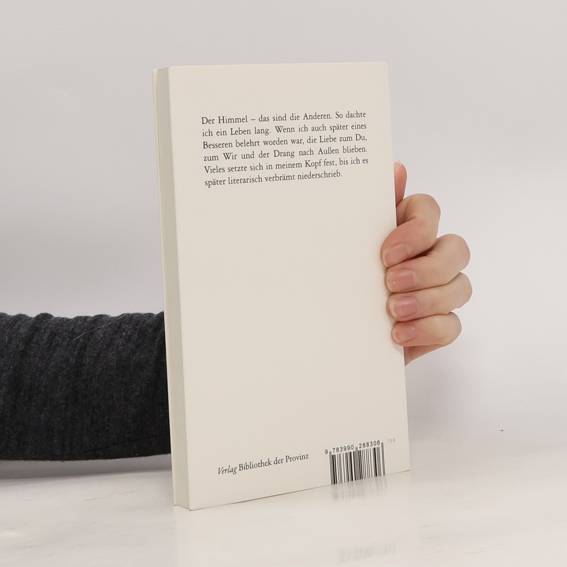 Der Himmel – das sind die Anderen. So dachte ich ein Leben lang. Wenn ich auch später eines Besseren belehrt worden war, die Liebe zum Du, zum Wir und der Drang nach Außen blieben. Vieles setzte sich in meinem Kopf fest, bis ich es später literarisch verbrämt niederschrieb. (Elisabeth Schöffl-Pöll)