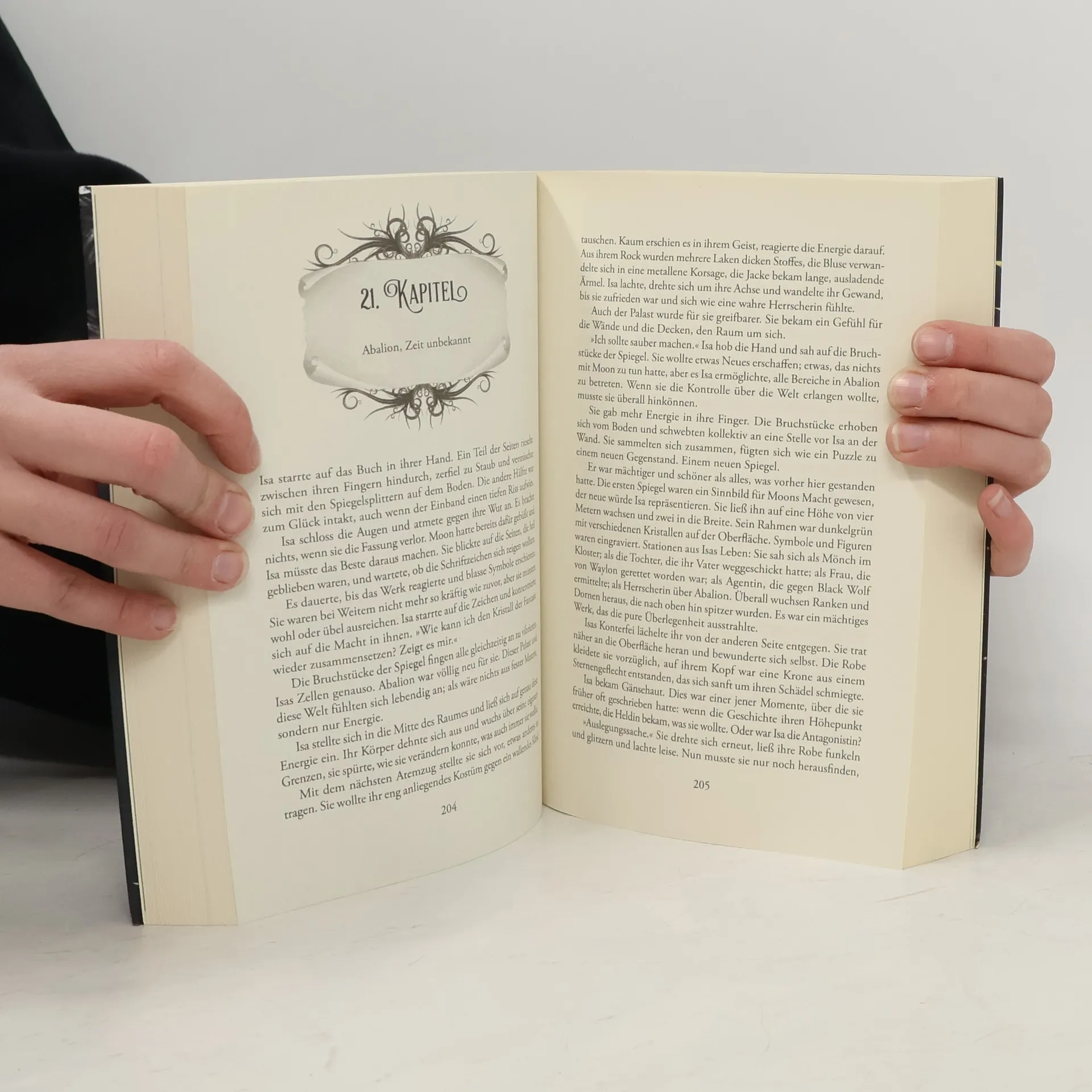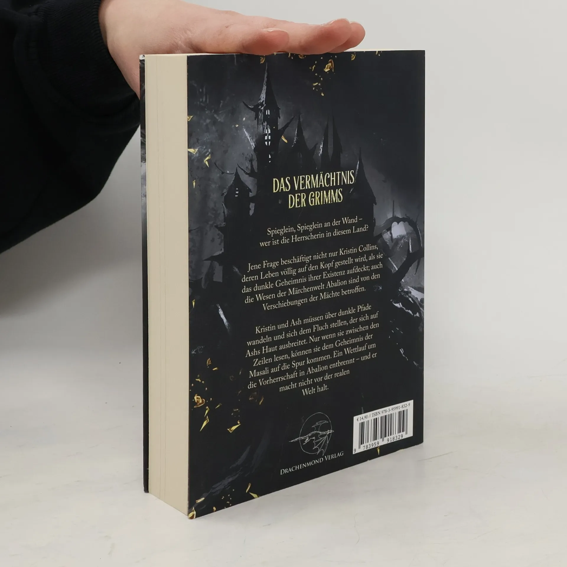 Spieglein, Spieglein an der Wand wer ist die Herrscherin in diesem Land?Jene Frage beschäftigt nicht nur Kristin Collins, deren Leben völlig auf den Kopf gestellt wird, als sie das dunkle Geheimnis ihrer Existenz aufdeckt; auch die Wesen der Märchenwelt Abalion sind von den Verschiebungen der Mächte betroffen. Ash kämpft mit Moon gegen einen vermeintlich unüberwindbaren Gegner. Jorge sieht sich mit seiner Vergangenheit konfrontiert und auch Conrad gerät zwischen die Fronten. Nichts bleibt, wie es scheint. Das Gute vermischt sich mit dem Bösen, aus den Tiefen Abalions steigt der Grimm mächtiger und gefährlicher als je zuvor empor.Kristin und Ash müssen über dunkle Pfade wandeln und sich dem Fluch stellen, der sich auf Ashs Haut ausbreitet. Nur wenn sie zwischen den Zeilen lesen, können sie dem Geheimnis der Masali auf die Spur kommen. Ein Wettlauf um die Vorherrschaft in Abalion entbrennt und er macht nicht vor der realen Welt halt.