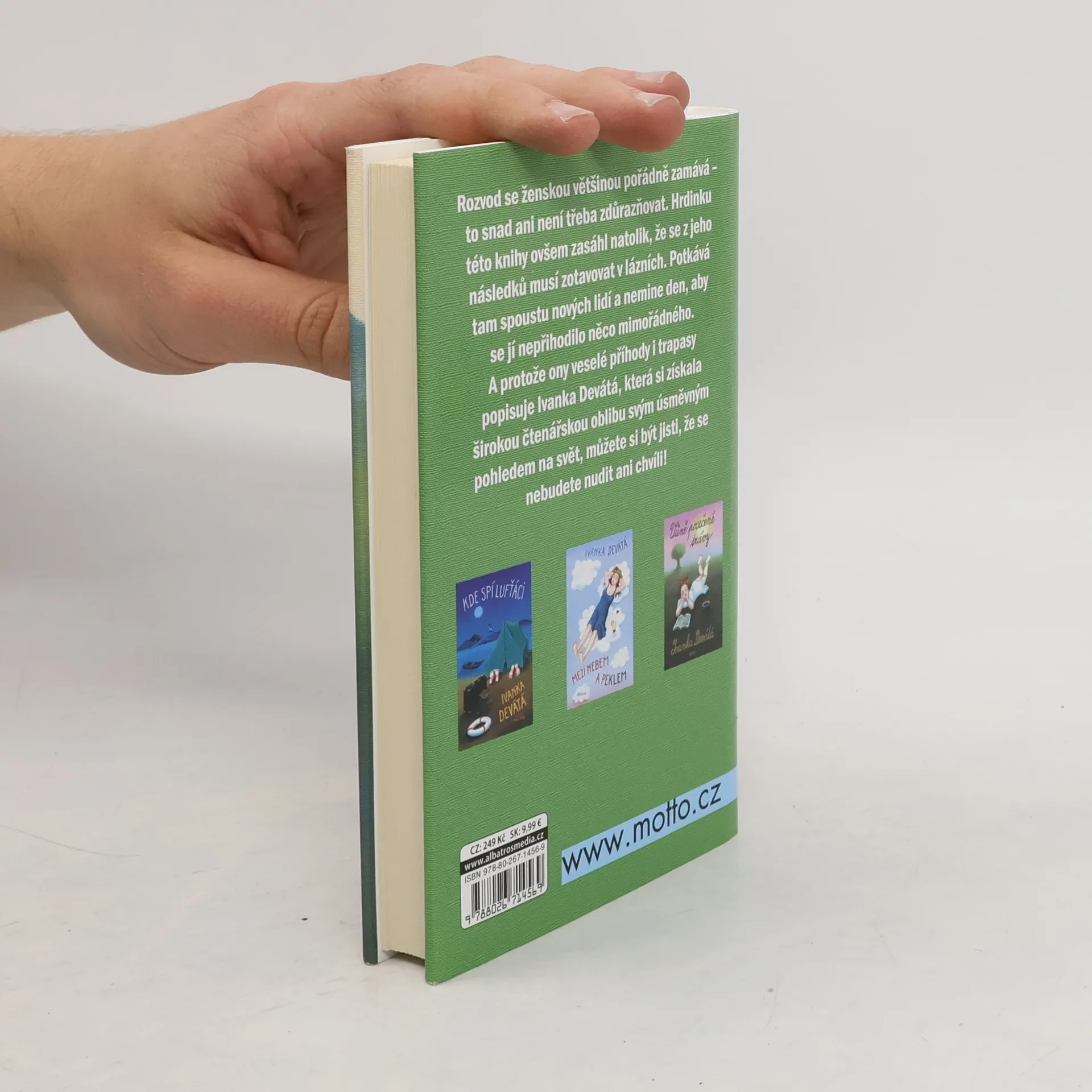 Rozvod se ženskou většinou pořádně zamává. Hrdinku této knihy ovšem zasáhl natolik, že se z jeho důsledků musí zotavovat v lázních. Potkává tam spoustu nových lidí a nemine den, aby se jí nepřihodilo něco mimořádného. A protože ony veselé příhody i trapasy popisuje Ivanka Devátá, která si získala širokou čtenářskou oblibu svým úsměvným pohledem na svět, můžete si být jisti, že se nebudete nudit ani chvíli.