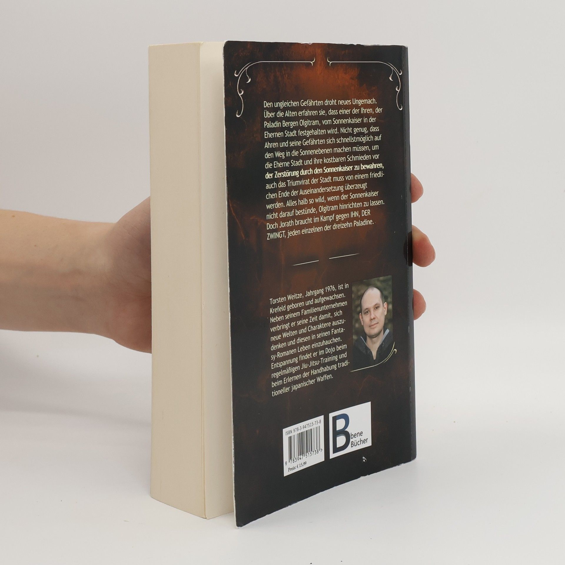 Den ungleichen Gefährten droht neues Ungemach. Über die Alten erfahren sie, dass einer der Ihren, der Paladin Bergen Olgitram, vom Sonnenkaiser in der Ehernen Stadt festgehalten wird. Nicht genug, dass Ahren und seine Gefährten sich schnellstmöglich auf den Weg in die Sonnenebenen machen müssen, um die Eherne Stadt und ihre kostbaren Schmieden vor der Zerstörung durch den Sonnenkaiser zu bewahren, auch das Triumvirat der Stadt muss von einem friedlichen Ende der Auseinandersetzung überzeugt werden. Alles halb so wild, wenn der Sonnenkaiser nicht darauf bestünde, Olgitram hinrichten zu lassen. Doch Jorath braucht im Kampf gegen IHN, DER ZWINGT, jeden einzelnen der dreizehn Paladine. Torsten Weitze entführt den Leser mit der Reihe „Der 13. Paladin“ in die fantastische Welt Joraths. Der heranwachsende Ahren lernt, sich gegen Dunkelwesen zu behaupten und begibt sich mit seinen Gefährten auf eine gefahrvolle Reise ins Reich der Elfen. Die epische High-Fantasy-Saga ist auf 13 Bände ausgelegt. Die ausgestaltete Welt, die überzeugenden Figuren und die spannende Geschichte begeistern bereits zehntausende von Lesern.