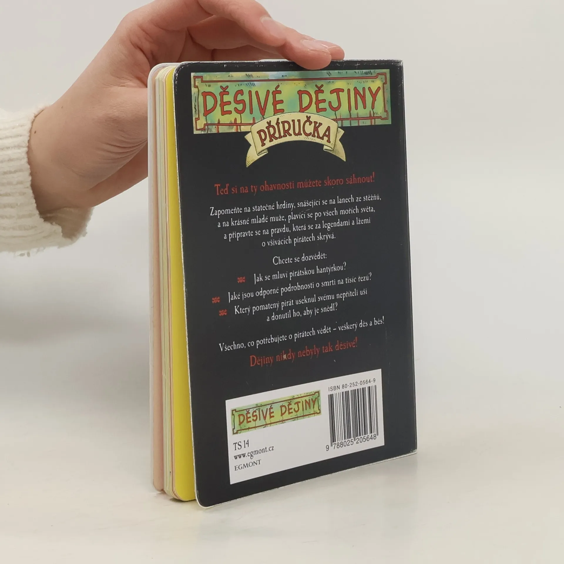 Zapomeňte na statečné hrdiny, spouštějící se na lanech ze stěžňů, a na krásné mladé muže, plavící se po všech mořích světa. Místo toho se raději připravte na pravdu, která se za legendami a lžemi o pirátech skrývá. Naučte se mluvit pirátskou hantýrkou, zjistěte odporné podrobnosti o smrti na tisíc řezů nebo si přečtěte, který pomatený pirát useknul svému nepříteli uši a donutil ho, aby je snědl. V této knížce najdete opravdu všechno, co potřebuje o pirátech vědět veškerý děs a běs! A věřte tomu, že čtení o dějinách nikdy nebylo tak děsivé!