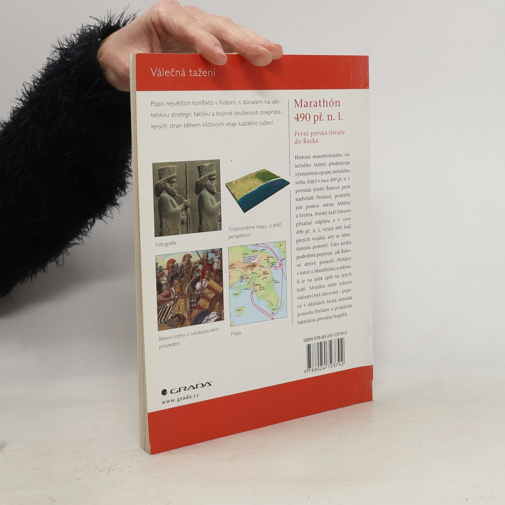 Historie marathónského válečného tažení představuje významnou epopej antického světa. Když v roce 499 př.n.l. povstali iónští Řekové proti nadvládě Peršanů, poskytly jim pomoc města Athény a Eretria. Perský král Dáreios přísahal odplatu a v roce 490 př.n.l. vyslal 600 lodí plných vojáků, aby se Athéňanům pomstil. Tato kniha podrobně popisuje, jak Řekové drtivě porazili Peršany v bitvě u Marathónu a zahnali je na útěk zpět na jejich lodě. Morální efekt tohoto vítězství byl obrovský - poprvé v dějinách řecká armáda porazila Peršany a prokázala taktickou převahu hoplítů.