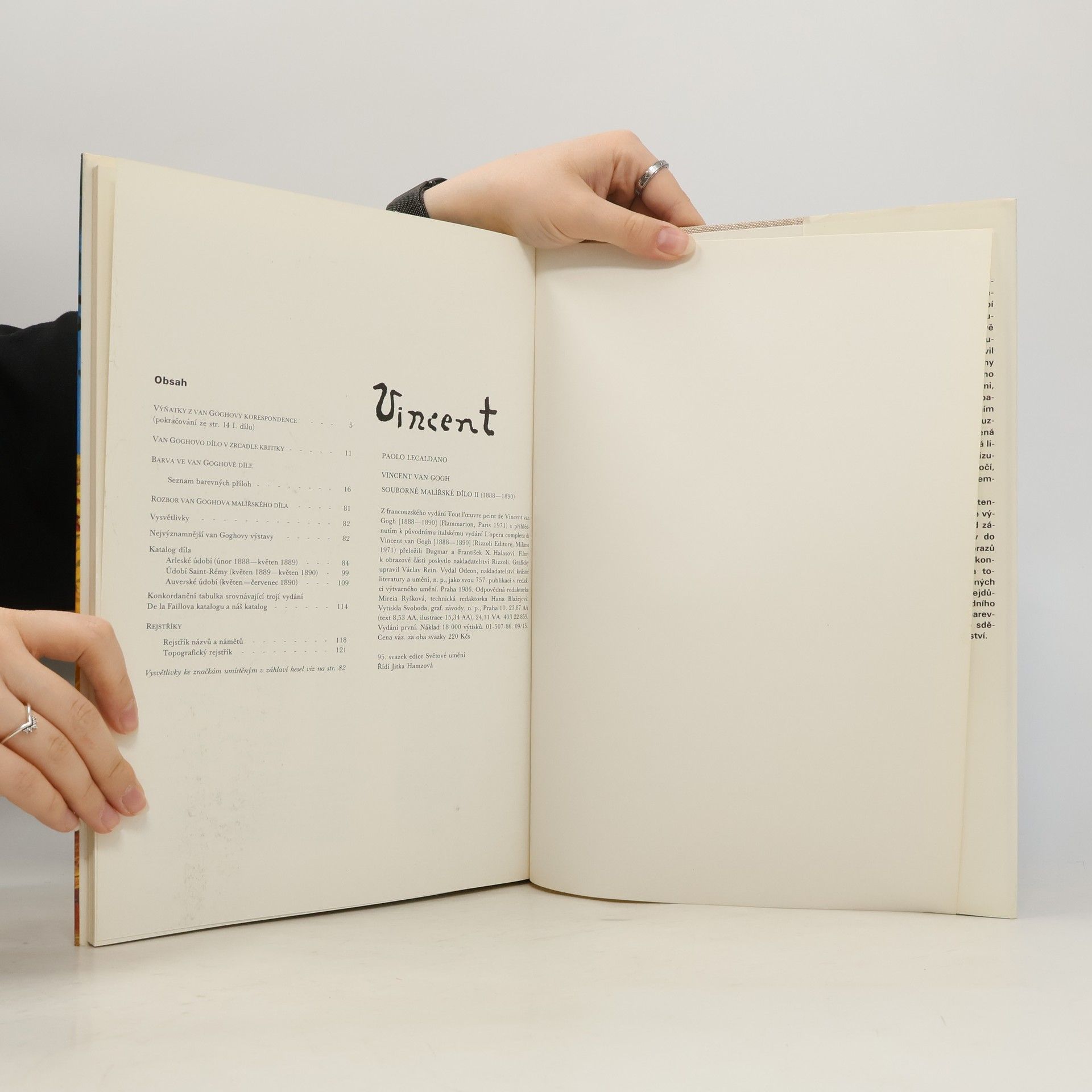 Souborné malířské dílo II (1888–1890). Obsahuje výňatky z van Goghovy korespondence, seznam barevných příloh, nejvýznamnější van Goghovy výstavy, katalog díla, konkordanční tabulku, rejstřík názvů a námětů, topografický rejstřík. Z francouzského vydání Tout l'œuvre peint de Vincent van Gogh [1888–1890] (Flammarion, Paris 1971) s přihlédnutím k původnímu italskému vydání L'opera completa di Vincent van Gogh [1888–1890] (Rizzoli Editore, Milano 1971) přeložili Dagmar a František X. Halasovi. Filmy k obrazové části poskytlo nakladatelství Rizzoli. Graficky upravil Václav Rein.