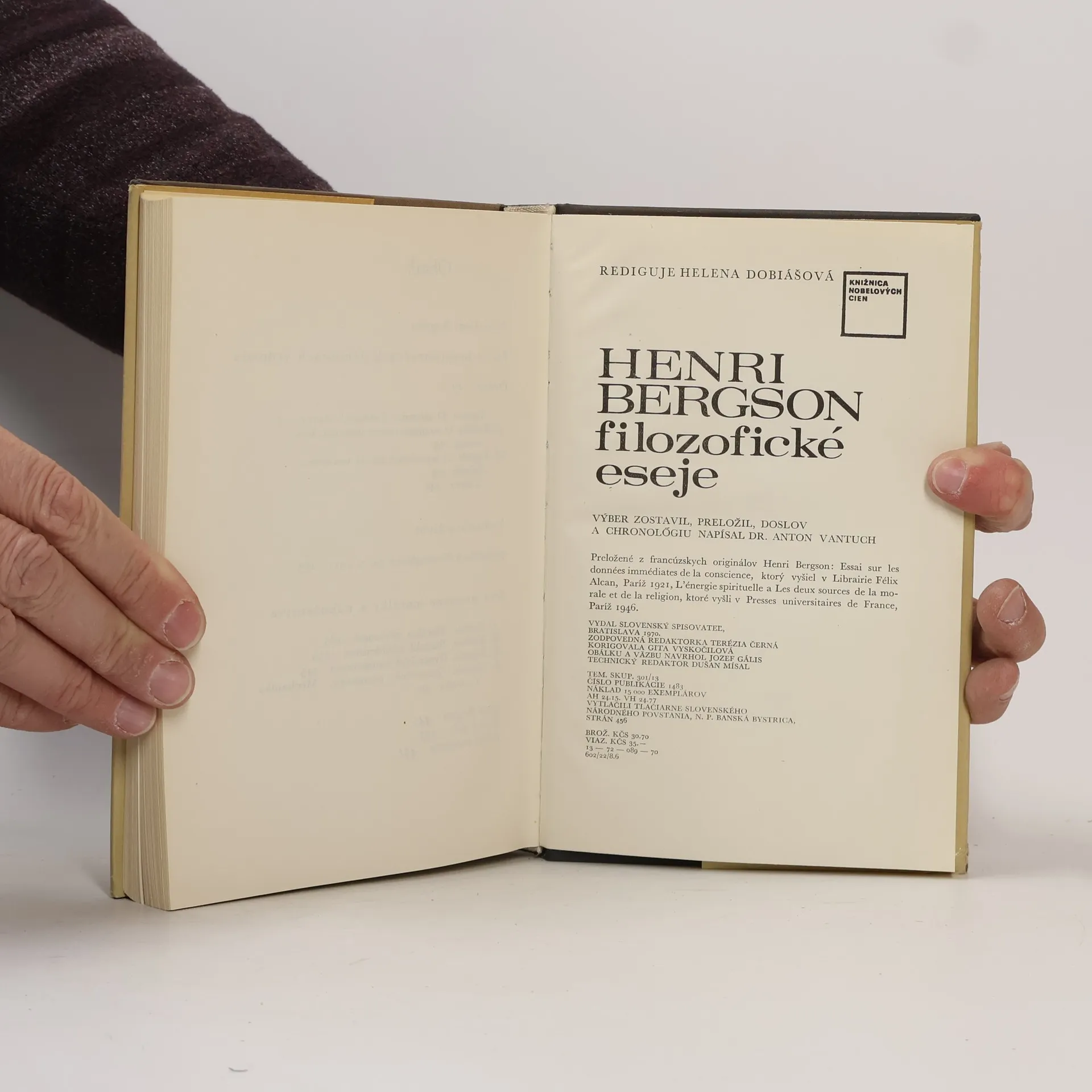 Filozofické dielo francúzskeho autora: Esej o bezprostredných danostiach vedomia, Dva pramene morálky a náboženstva, Vedomie a život. Obsahuje prejav H. Bergsona pri preberaní Nobelovej ceny za literatúru.