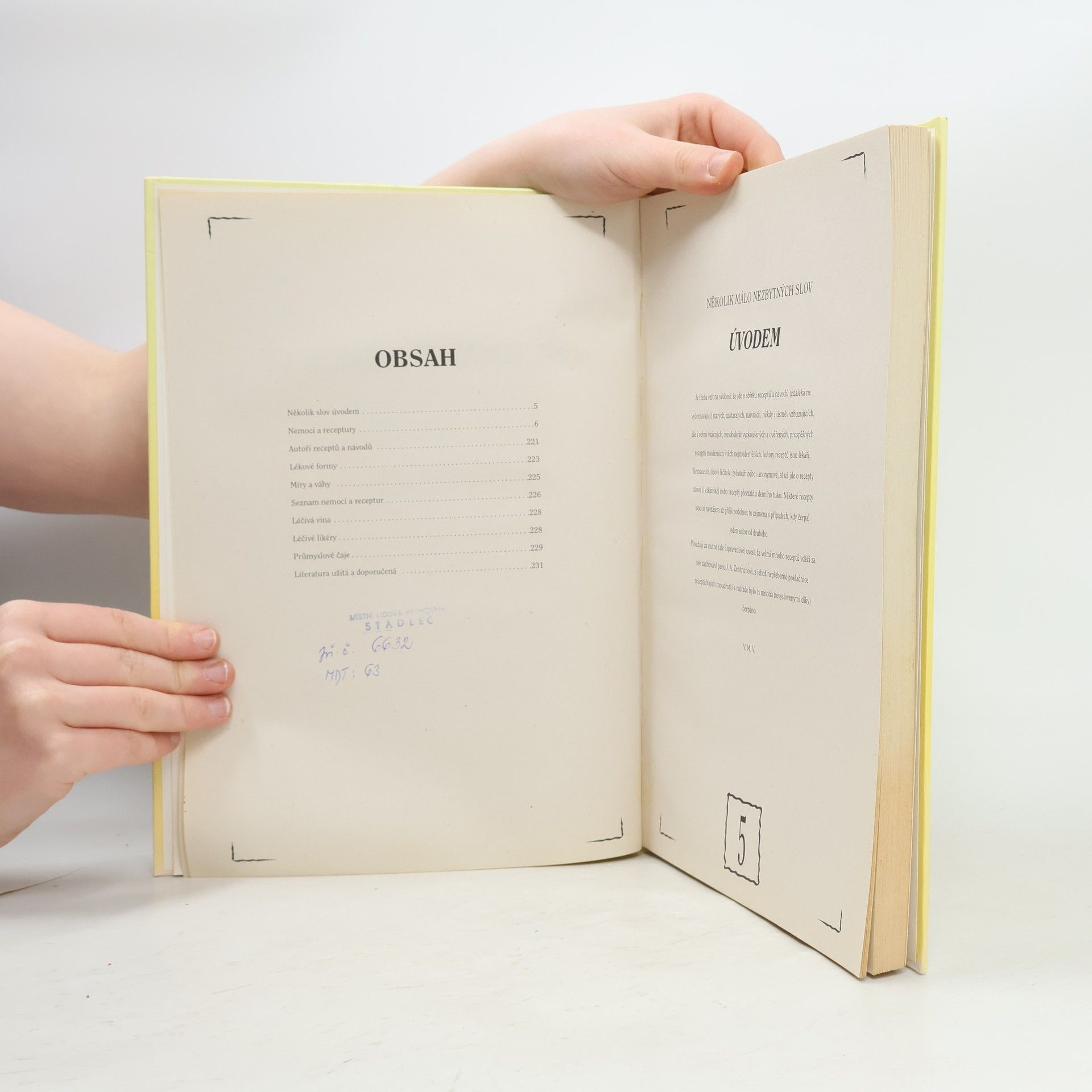 Několik málo nezbytných slov autora: Je třeba vzít na vědomí, že jde o sbírku receptů a návodů (zdaleka ne vyčerpávající) starých, zastaralých, naivních, někdy i úsměv vzbuzujících, ale i velmi vzácných, mnohokrát vyzkoušených a ověřených, prospěšných receptů moderních i těchnejmodernějších. Autory receptů jsou lékaři, farmaceuti, lidoví léčitelé, bylinkáři nebo i anonymové, ať už jde o recepty lidové (i cikánské) nebo recepty převzaté z denního tisku. Některé recepty jsou si navzájem až příliš podobné; a to zejména v případech, kdy čerpal jeden autor od druhého. Považuji za nutné (ale i spravedlivé) uvést, že velmi mnoho receptů vděčí za své zachování panu J. A. Zentrichovi, z jehož nepřeberné pokladnice receptářských moudrostí a rad zde bylo (s mnoha nevyslovenými díky) čerpáno.
