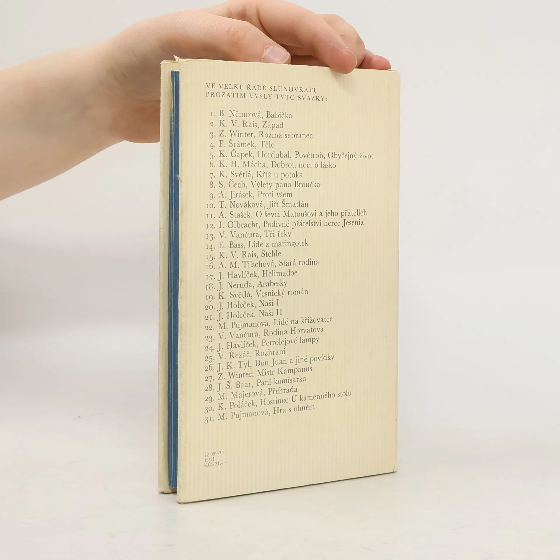 Nově utvořený výbor z menších pražských próz přináší jednak časově vzdálenější látky, které znala autorka z místního podání (Dcera otce svého, Na košatkách, Drama zbořeného domu), a jednak látky ze zážitků svého mládí z Prahy předrevoluční (Pan policejní komisař) a z Prahyza revoluce 1848 (Pán a sluha.). Celou knihou procházejí výňatky z memoárového díla Upomínky (V Poštovské ulici, Vltava, Naše babička, S otcem, Tandlmark, Nedělní lekce), jež vedle vypravěčské půvabnosti mají zpřítomňovat osobu spisovatelky. Výbor uspořádal, edičně připravil, medailón o autorce, vysvětlivky a ediční poznámky napsal Mojmír Otruba. 22-099-75
