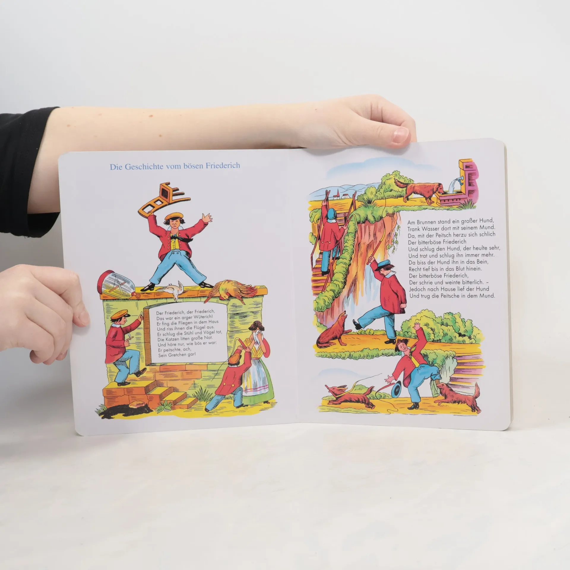 1844 suchte der Arzt Heinrich Hoffmann ein Bilderbuch als Weihnachtsgeschenk für seinen dreijährigen Sohn Carl, fand jedoch nichts Passendes. In der Zeitschrift „Gegen“ beschreibt Hoffmann, dass er lange Erzählungen oder moralische Geschichten vorfand, die nicht für Kinder in diesem Alter geeignet waren. Schließlich kehrte er mit einem leeren Schreibheft zurück und beschloss, ein eigenes Bilderbuch zu erstellen. Das Geschenk kam gut an und erregte das Interesse seiner erwachsenen Freunde, die ihn drängten, das Buch zu veröffentlichen. Zunächst lehnte er ab, doch ein befreundeter Verleger konnte ihn überzeugen. 1845 erschien das Buch erstmals unter dem Titel „Lustige Geschichten und drollige Bilder für Kinder von 3–6 Jahren“, ab der vierten Auflage 1847 als „Struwwelpeter“. Seit 1858 gab es veränderte Darstellungen. Hoffmann erzählte Geschichten über unartige Kinder, die nicht auf ihre Eltern hören und dafür bestraft werden, wie der „bitterböse Friederich“, der Tiere quält, oder Paulinchen, die mit Streichhölzern spielt. Auch positive Geschichten, wie die vom Hasen, der den Jäger überlistet, sind enthalten. Namen wie Zappelphilipp und Suppenkaspar sind in die deutsche Sprache eingegangen, und Textpassagen wie „Konrad“ sprach die Frau Mama, „ich geh aus und Du bleibst da“ sind heute allgemein bekannt.