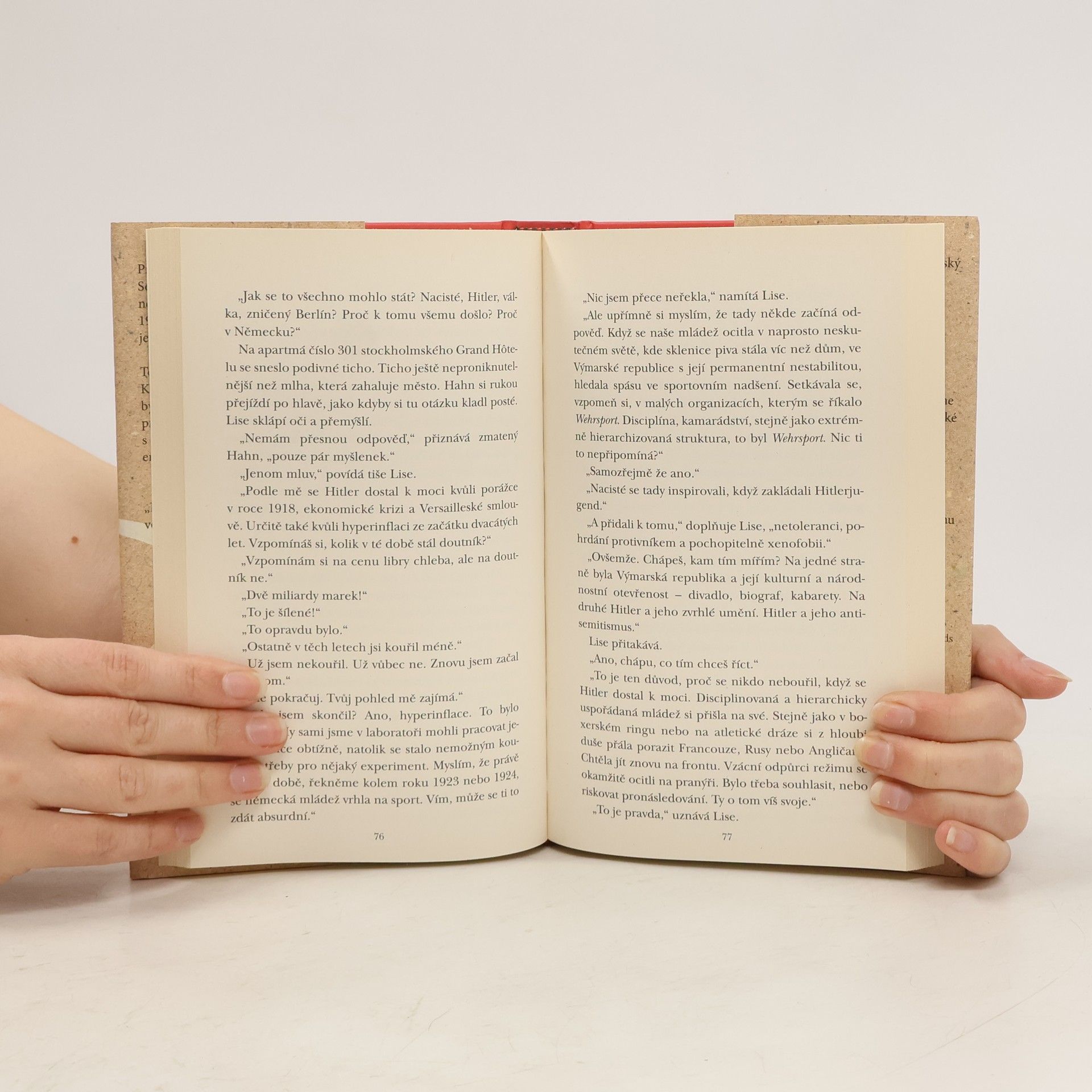 Dva kolegové-objevitelé, muž a žena, Němec a Židovka, se setkávají v prosinci 1946, kdy Otto Hahn očekává Nobelovu cenu za chemii. Před tím ho však čeká konfrontace s Lisou Meitnerovou, jeho bývalou spolupracovnicí. V 30. letech společně objevovali tajemství atomu, ale historické události je rozdělily. Lise se ptá, komu skutečně náleží cena, kterou Otto má převzít. Oba chtěli jen bádat, ale objev jaderného štěpení v hitlerovském Německu přinesl dalekosáhlé důsledky. Jen jeden z nich je nominován na Nobelovu cenu – byla jejich práce skutečně rovnocenná? Osm let odloučení, kdy Otto žil v Německu a Lise v emigraci ve Švédsku, přináší napětí do jejich rozhovoru v luxusním stockholmském hotelu. Diskuze se mění v nelítostné zúčtování, připomínající šachovou partii, kde se snaží jeden druhého vyvést z rovnováhy nevyvratitelnými argumenty. V této útlé knize Cyril Gely dramaticky konfrontuje pravdy obou vědců a zkoumá, jak se jejich vztah rozštěpil, stejně jako atom, který objevili.