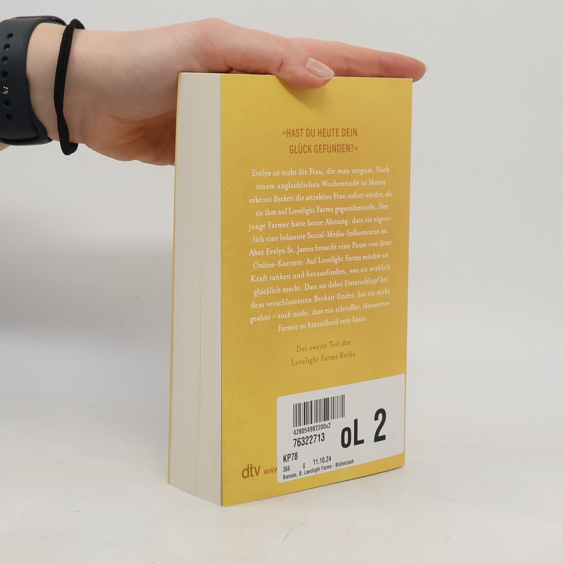 Meet me in Spring – Wo das Glück zu Hause ist Evelyn ist nicht die Frau, die man vergisst. Nach einem unglaublichen Wochenende in Maine erkennt Beckett die attraktive Frau sofort wieder, als sie ihm auf Lovelight Farms gegenübersteht. Der junge Farmer hatte keine Ahnung, dass sie eigentlich eine bekannte Social-Media-Influencerin ist. Aber Evelyn St. James braucht eine Pause von ihrer Online-Karriere. Auf Lovelight Farms möchte sie Kraft tanken und herausfinden, was sie wirklich glücklich macht. Dass sie dabei Unterschlupf bei dem verschlossenen Beckett findet, hat sie nicht geahnt –auch nicht, dass ein schroffer, tätowierter Farmer so hinreißend sein kann. Zum Mitfühlen, Schwärmen und Genießen: LOVELIGHT FARMS zeigt, dass man an Wünschen festhalten darf. »Borisons Worte haben eine besondere Magie« Elena Armas »Die aufregendste neue Romance-Autorin« Hannah Grace Der zweite Band der Lovelight-Farms-Reihe von B.K. Borison. Alle Bände der Reihe bei dtv: Lovelight Farms – Lichterglanz (Band 1) Lovelight Farms – Blütenzauber (Band 2) Lovelight Farms – Sommerleuchten (Band 3) Lovelight Farms – Herbstrauschen (Band 4) Alle Bände können unabhängig voneinander gelesen werden.
