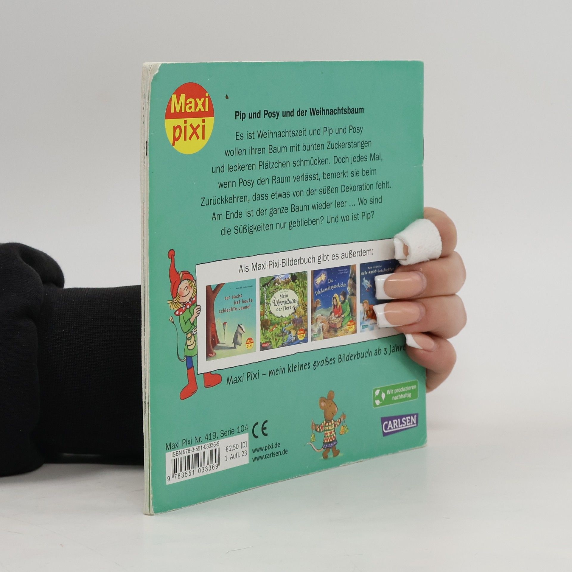 Weihnachten mit den Bilderbuchhelden Pip und Posy Es ist Weihnachtszeit und Pip und Posy wollen ihren Baum mit bunten Zuckerstangen und leckeren Plätzchen schmücken. Doch jedes Mal, wenn Posy den Raum verlässt, bemerkt sie beim Zurückkehren, dass etwas von der süßen Dekoration fehlt. Am Ende ist der ganze Baum wieder leer... Wo sind die Süßigkeiten nur geblieben? Und wo ist Pip? Ein liebenswert-witziges Bilderbuch zum Vorlesen für Kinder ab 3 Jahren. Maxi Pixi – die kleinen großen Bilderbücher im Softcover.