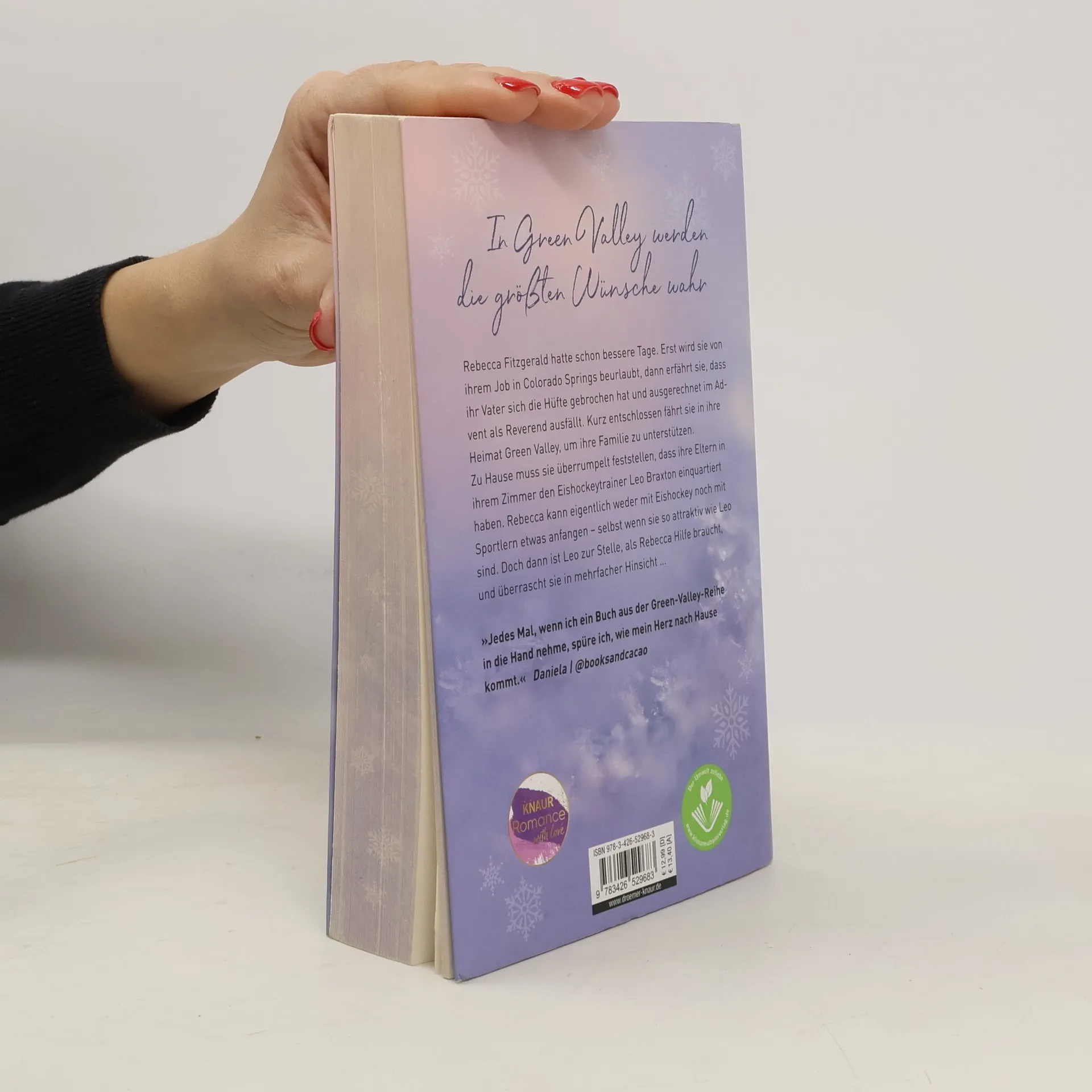 Cozy, romantisch und herzerwärmend: In ihrem neuen Liebesroman entführt Bestseller-Autorin Lilly Lucas erneut nach Green Valley, wo Rebecca Fitzgeralds Leben auf den Kopf gestellt wird. Nach einer Beurlaubung von ihrem Job in Colorado Springs und der Nachricht über die Verletzung ihres Vaters, der im Advent als Reverend ausfällt, kehrt sie in ihre Heimat zurück, um ihre Familie zu unterstützen. Dort trifft sie überraschend auf Leo Braxton, den Eishockeytrainer, der in ihrem Zimmer untergebracht ist. Obwohl Rebecca mit Eishockey und Sportlern wenig anfangen kann, wird Leo für sie zur unerwarteten Unterstützung in schwierigen Zeiten. Die idyllische Kleinstadt in den Rocky Mountains bietet in der Weihnachtszeit eine traumhafte Kulisse. Diese Geschichte ist ideal für Fans romantischer Liebesgeschichten und Winterromane, die eine herzerwärmende Erzählung suchen. Die Green-Valley-Reihe umfasst mehrere New-Adult-Liebesromane, die unabhängig voneinander gelesen werden können, darunter die Geschichten von Lena & Ryan, Izzy & Will, Elara & Noah, Annie & Cole, Leonie & Sam sowie ein Kurzroman über Sarah & Grayson.