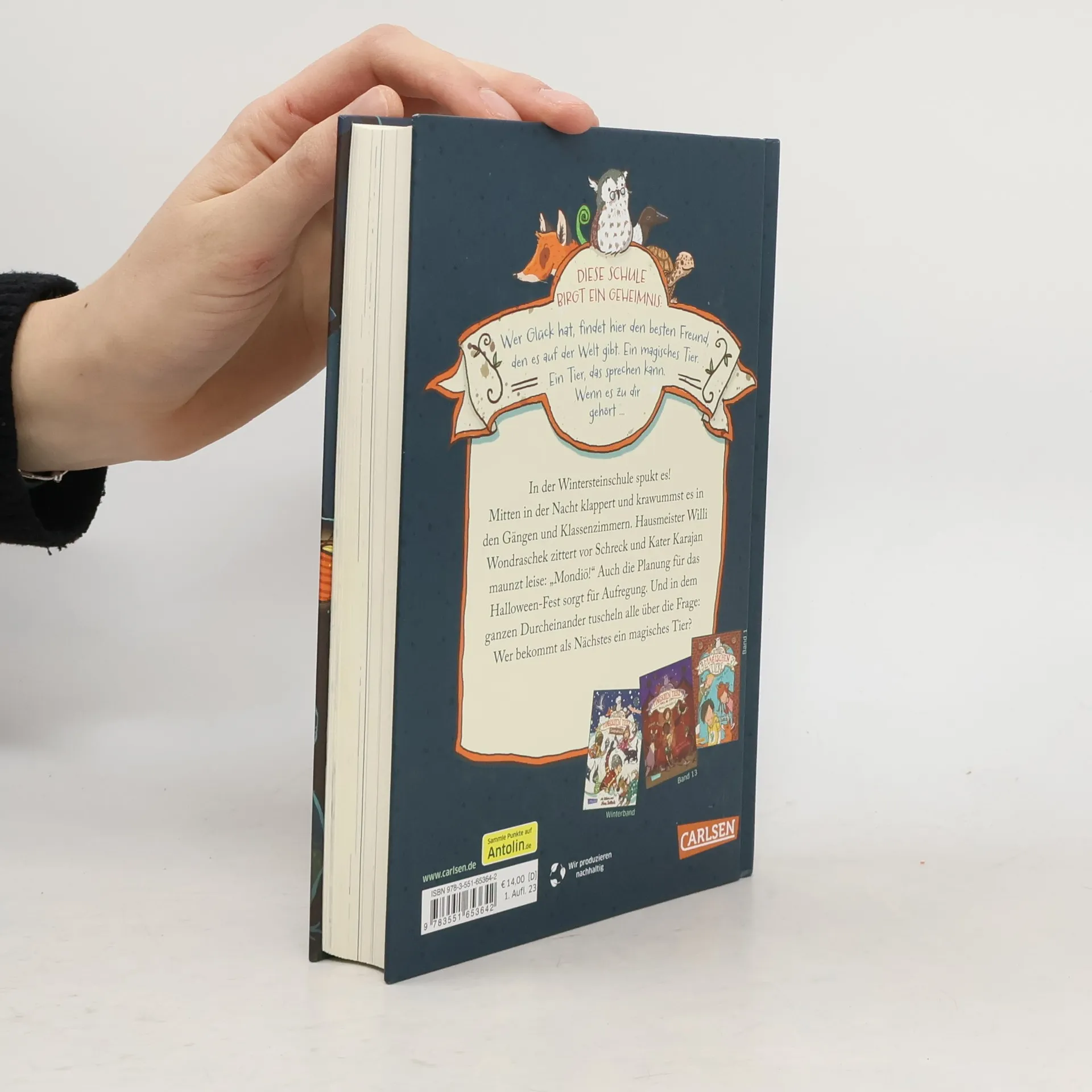 Wer in der Klasse wird heute ein magisches, sprechendes Tier erhalten? *** BAND 14: In der Wintersteinschule spukt es! Mitten in der Nacht kracht, klappert und krawummst es in den Gängen und Klassenzimmern. Der Hausmeister zittert vor Schreck und Kater Karajan maunzt leise: „Mondiö!“ Und dann sorgt auch noch das Halloween-Fest für Aufregung. Die Kinder aus Miss Cornfields Klasse helfen gemeinsam mit ihren magischen Gefährten beim Schmücken und Vorbereiten und tuscheln über die Frage: Wer bekommt wohl als Nächstes ein magisches Tier? DIE SCHULE DER MAGISCHEN TIERE: Diese Schule birgt ein Geheimnis: Wer Glück hat, findet hier den besten Freund, den es auf der Welt gibt. Ein magisches Tier. Ein Tier, das sprechen kann. Wenn es zu dir gehört ... *** Viele Bilder, viele kurze Kapitel, viel Lesespaß! Der vierzehnte Band der beliebten Bestseller-Reihe! Mit Leuchtfarbe auf dem Cover