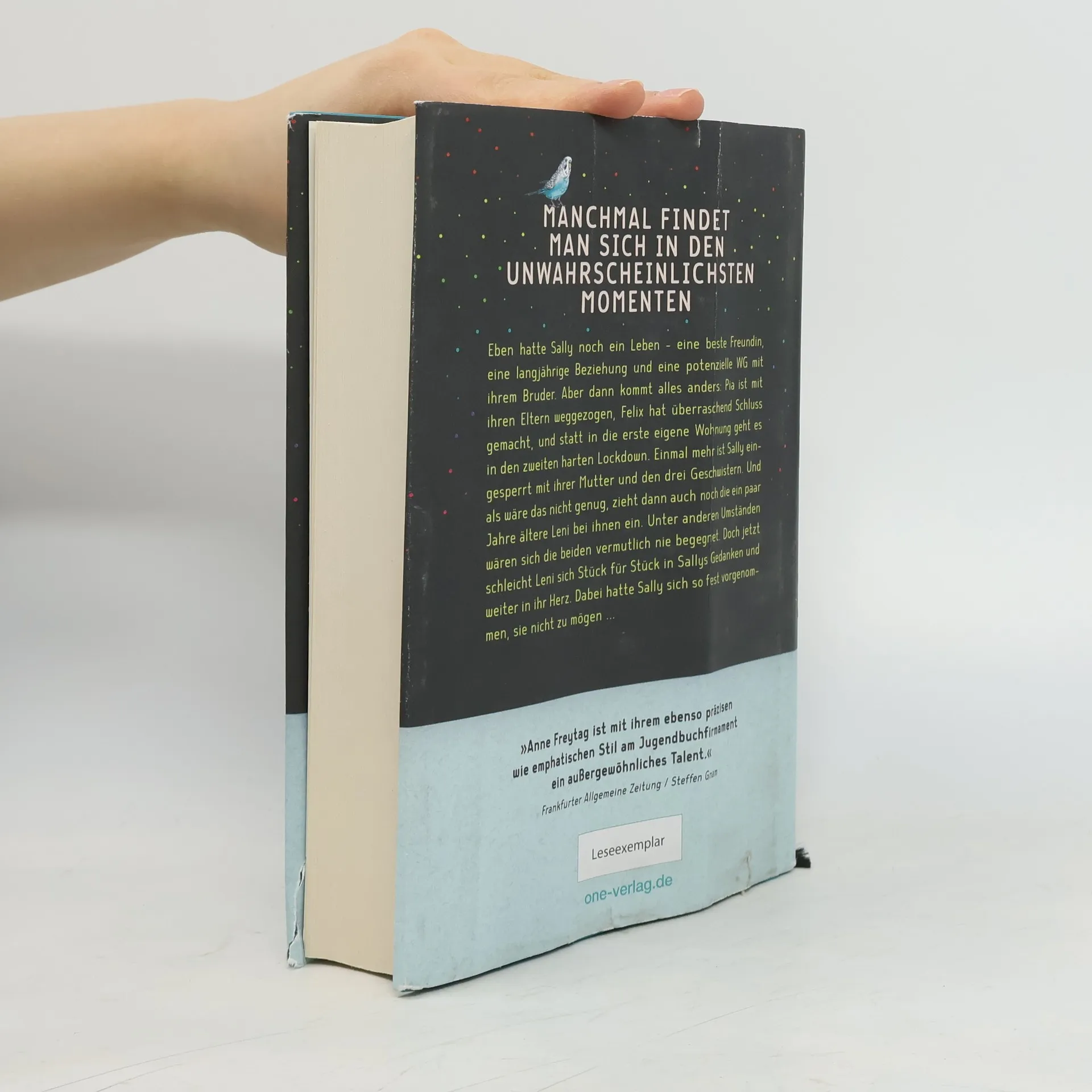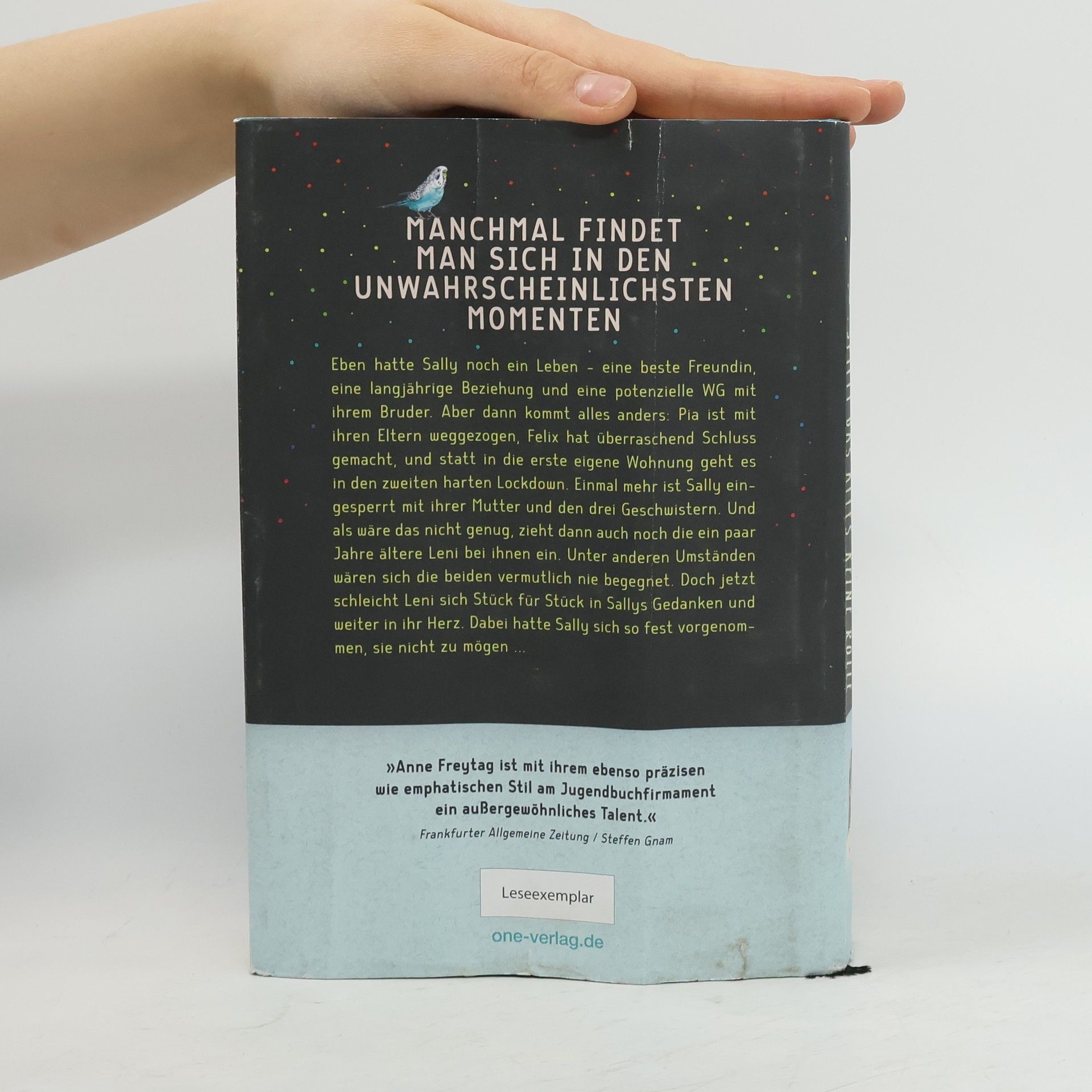 Bestsellerautorin Anne Freytag ist eine der großen und gefeierten deutschen All-Age-Stimmen Manchmal findet man sich in den unwahrscheinlichsten Momenten ... Eben hatte Sally noch ein Leben - eine beste Freundin, eine langjährige Beziehung und eine potenzielle WG mit ihrem Bruder. Aber dann kommt alles anders: Pia ist mit ihren Eltern weggezogen, Felix hat überraschend Schluss gemacht, und statt in die erste eigene Wohnung geht es in den zweiten harten Lockdown. Einmal mehr ist Sally eingesperrt mit ihrer Mutter und den drei Geschwistern. Und als wäre das nicht genug, zieht dann auch noch die ein paar Jahre ältere Leni bei ihnen ein. Unter anderen Umständen wären sich die beiden vermutlich nie begegnet. Doch jetzt schleicht Leni sich Stück für Stück in Sallys Gedanken und weiter in ihr Herz. Dabei hatte Sally sich so fest vorgenommen, sie nicht zu mögen ... Lebensnahe Themen und eine bildgewaltige Sprache - verpackt in einem mit Liebe zum Detail ausgestatteten Hardcover
