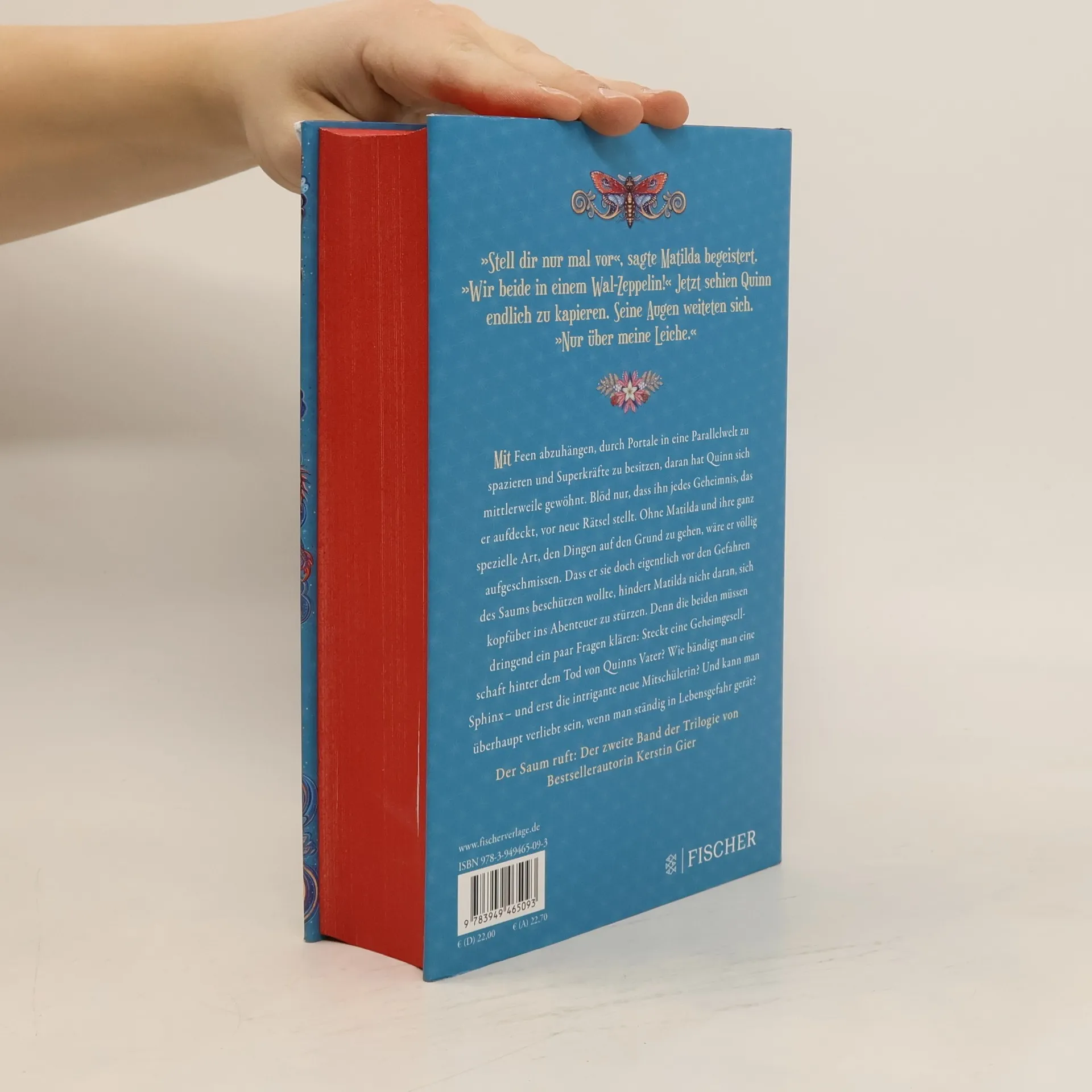 Der Saum ruft: Der zweite Band der Vergissmeinnicht-Trilogie lädt zum Träumen ein. Mit Feen abzuhängen, durch Portale in eine Parallelwelt zu spazieren und Superkräfte zu besitzen, daran hat Quinn sich mittlerweile gewöhnt. Blöd nur, dass ihn jedes Geheimnis, das er aufdeckt, vor neue Rätsel stellt. Ohne Matilda und ihre ganz spezielle Art, den Dingen auf den Grund zu gehen, wäre er völlig aufgeschmissen. Dass er sie doch eigentlich vor den Gefahren des Saums beschützen wollte, hindert Matilda nicht daran, sich kopfüber ins Abenteuer zu stürzen. Denn die beiden müssen dringend ein paar Fragen klären: Steckt eine Geheimgesellschaft hinter dem Tod von Quinns Vater? Wie bändigt man eine Sphinx– und erst die intrigante neue Mitschülerin? Und kann man überhaupt verliebt sein, wenn man ständig in Lebensgefahr gerät? »Stell dir nur mal vor«, sagte Matilda begeistert. »Wir beide in einem Wal-Zeppelin!« Jetzt schien Quinn endlich zu kapieren. Seine Augen weiteten sich. »Nur über meine Leiche.«
