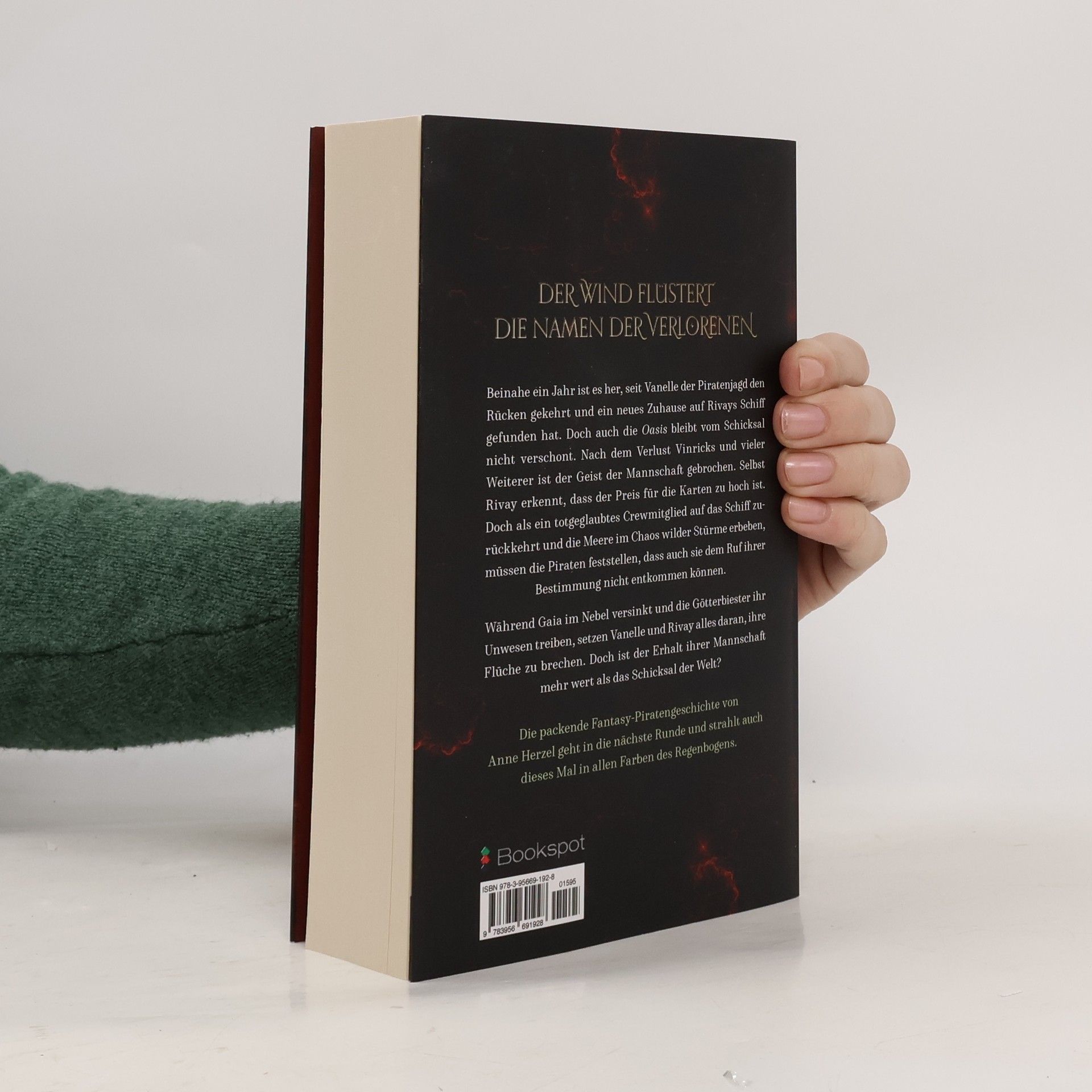 DER WIND FLÜSTERT DIE NAMEN DER VERLORENEN Beinahe ein Jahr ist es her, seit Vanelle der Piratenjagd den Rücken gekehrt und ein neues Zuhause auf Rivays Schiff gefunden hat. Doch auch die Oasis bleibt vom Schicksal nicht verschont. Nach dem Verlust Vinricks und vieler Weiterer ist der Geist der Mannschaft ge-brochen. Selbst Rivay erkennt, dass der Preis für die Karten zu hoch ist. Doch als ein totge-glaubtes Crewmitglied auf das Schiff zurückkehrt und die Meere im Chaos wilder Stürme erbeben, müssen die Piraten feststellen, dass auch sie dem Ruf ihrer Bestimmung nicht ent-kommen können. Während Gaia im Nebel versinkt und die Götterbiester ihr Unwesen treiben, setzen Vanelle und Rivay alles daran, ihre Flüche zu brechen. Doch ist der Erhalt ihrer Mannschaft mehr wert als das Schicksal der Welt?