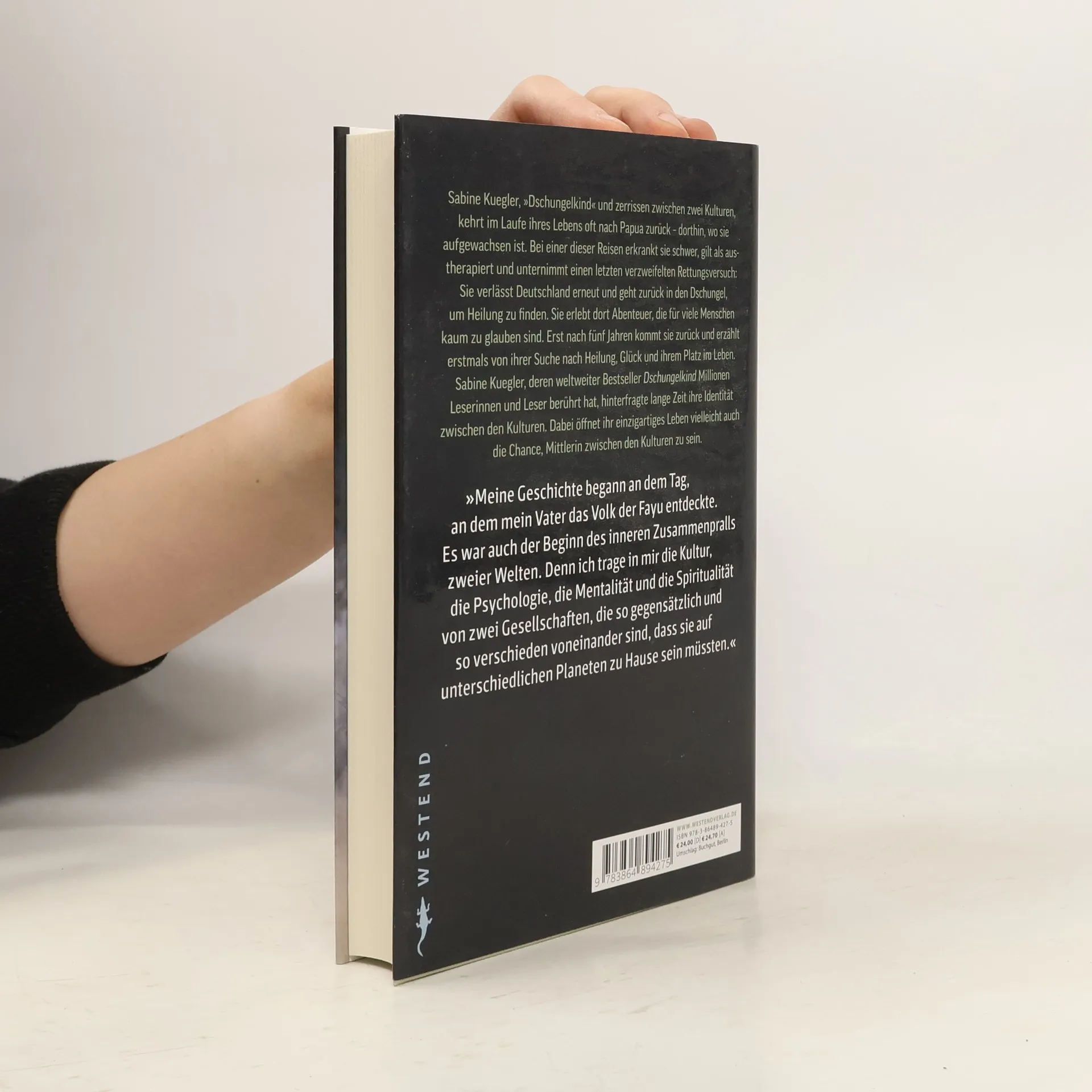 Sabine Kuegler, »Dschungelkind« und zerrissen zwischen zwei Kulturen, kehrt im Laufe ihres Lebens oft nach Papua zurück – dorthin, wo sie aufgewachsen ist. Bei einer dieser Reisen erkrankt sie schwer, gilt als austherapiert und unternimmt einen letzten verzweifelten Sie verlässt Deutschland erneut und geht zurück in den Dschungel, um Heilung zu finden. Sie erlebt dort Abenteuer, die für viele Menschen kaum zu glauben sind. Erst nach fünf Jahren kommt sie zurück und erzählt erstmals von ihrer Suche nach Heilung, Glück und ihrem Platz im Leben. Sabine Kuegler, deren weltweiter Bestseller Dschungelkind Millionen Leserinnen und Leser berührt hat, hinterfragte lange Zeit ihre Identität zwischen den Kulturen. Dabei öffnet ihr einzigartiges Leben vielleicht auch die Chance, Mittlerin zwischen den Kulturen zu sein."Meine Geschichte begann an dem Tag, an dem mein Vater das Volk der Fayu entdeckte, einen Stamm, der in seiner Entwicklung seit Jahrhunderten stillsteht. Es war auch der Beginn des inneren Zusammenpralls zweier Welten. Denn ich trage in mir die Kultur, die Psychologie, die Mentalität und die Spiritualität von zwei Gesellschaften, die so gegensätzlich und so voneinander verschieden sind,dass sie auf unterschiedlichen Planeten zu Hause sein müssten."