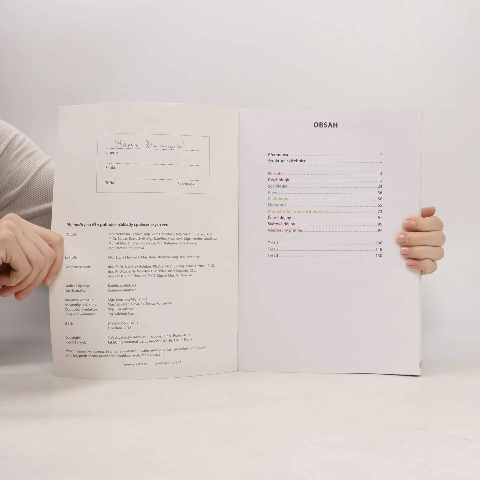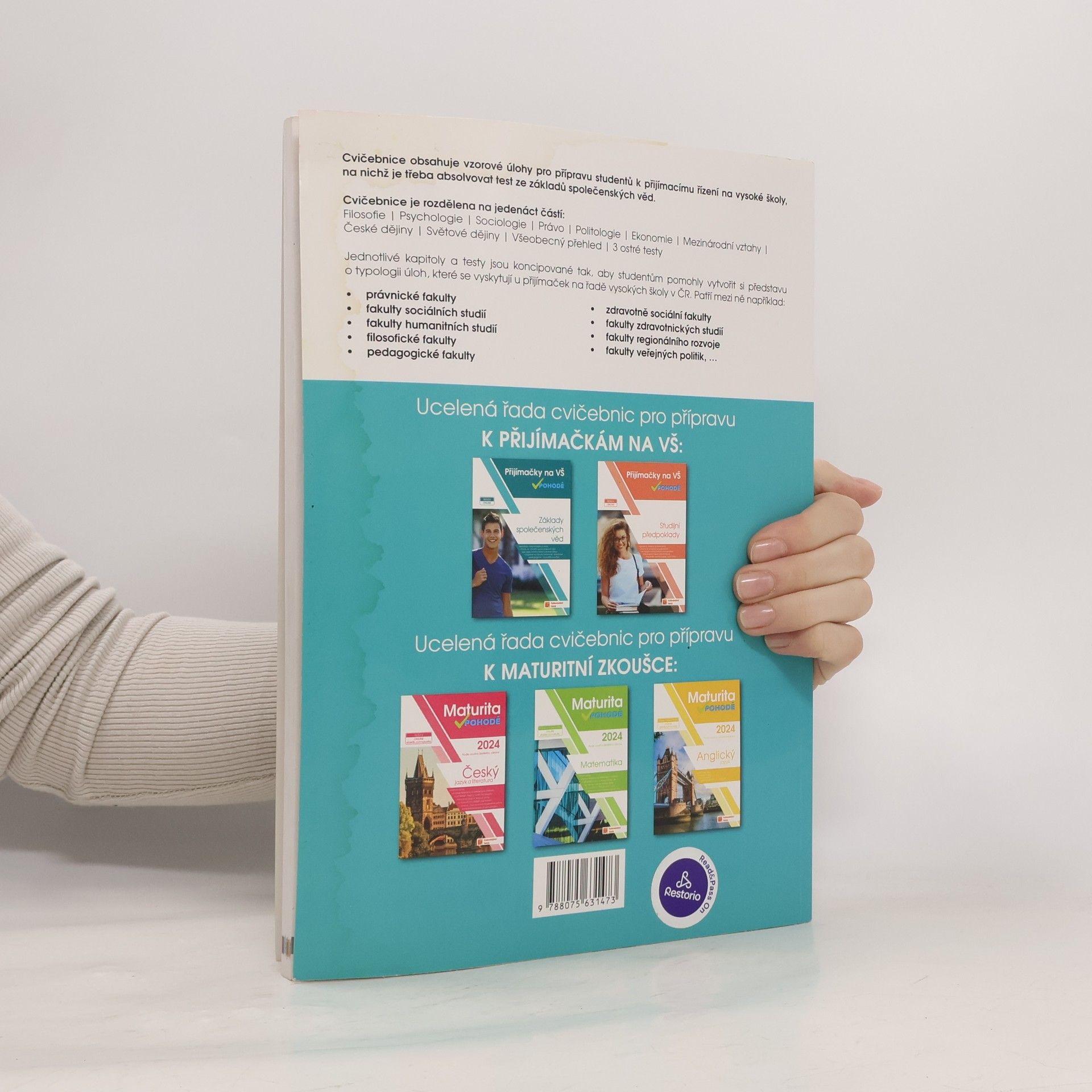 Cílem cvičebnic je poskytnout komplexní přípravu k přijímacímu řízení na vysoké školy, na nichž je třeba absolvovat test ze studijních předpokladů a základů společenských věd. Zpracováním různorodých typologií testových otázek a nejfrekventovanějších témat a oblastí z přijímacích řízení v ČR se podařilo žákům poskytnout kompletní podklady pro přípravu na testy ze studijních předpokladů a základů společenských věd na libovolnou vysokou školu v České republice. Cvičebnice obsahují vzorové úlohy pro přípravu studentů k přijímacímu řízení na vysoké školy, na nichž je třeba absolvovat test ze studijních předpokladů a základů společenských věd.