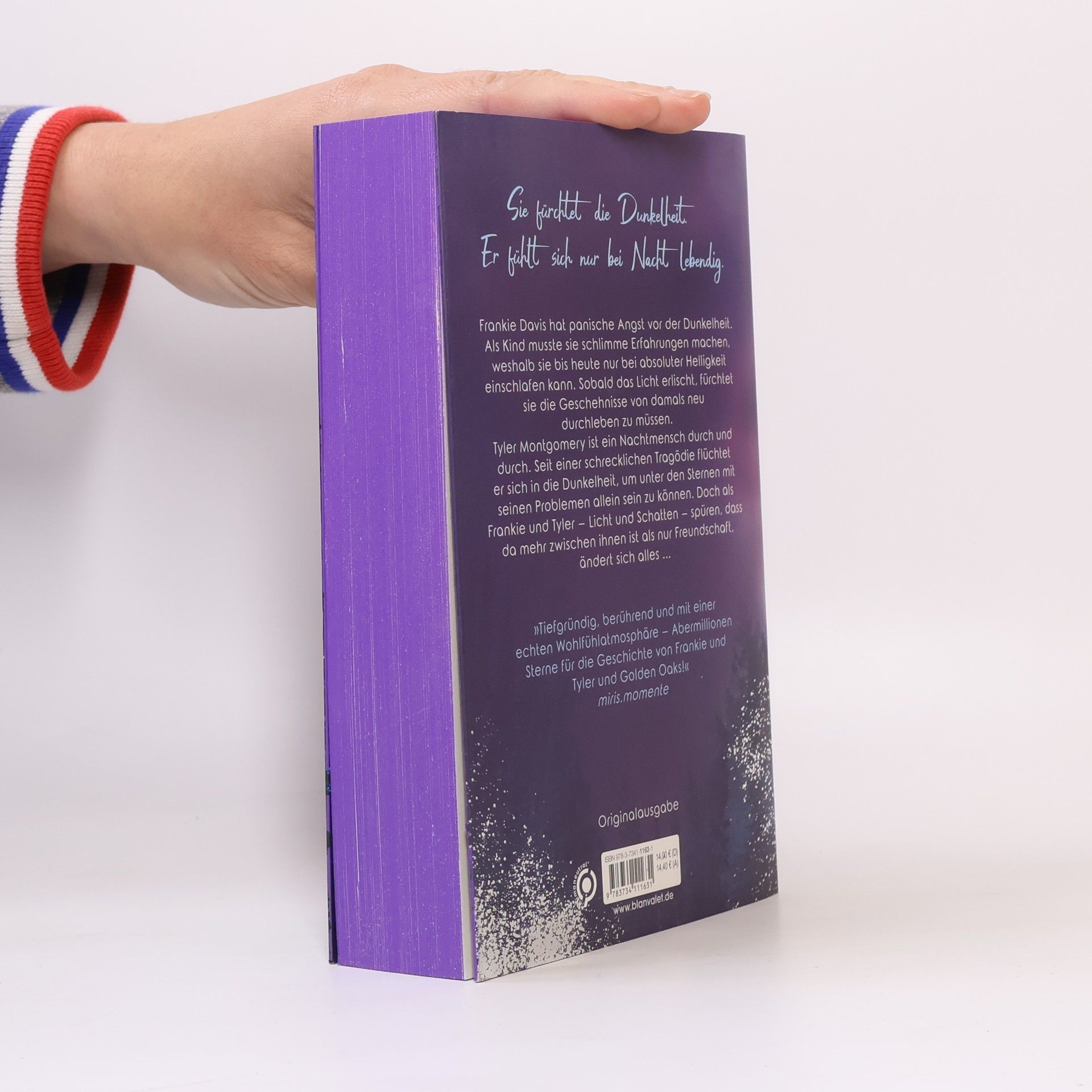 Frankie & Tyler: Sie fürchtet die Dunkelheit. Er fühlt sich nur bei Nacht lebendig. Doch als Licht und Schatten aufeinandertreffen, ändert sich alles … Frankie Davis hat panische Angst vor der Dunkelheit. Als Kind musste sie schlimme Erfahrungen machen, weshalb sie bis heute nur bei absoluter Helligkeit einschlafen kann. Sobald das Licht erlischt, fürchtet sie die Geschehnisse von damals neu durchleben zu müssen. Tyler Montgomery ist ein Nachtmensch durch und durch. Seit einer schrecklichen Tragödie flüchtet er sich in die Dunkelheit, um unter den Sternen mit seinen Problemen allein sein zu können. Doch als Frankie und Tyler – Licht und Schatten – spüren, dass da mehr zwischen ihnen ist als nur Freundschaft, ändert sich alles … Die Golden-Oaks-Reihe bei Blanvalet: Band 1: Sounds of Silence Band 2: Lights of Darkness Beide Bände können auch unabhängig voneinander gelesen werden.