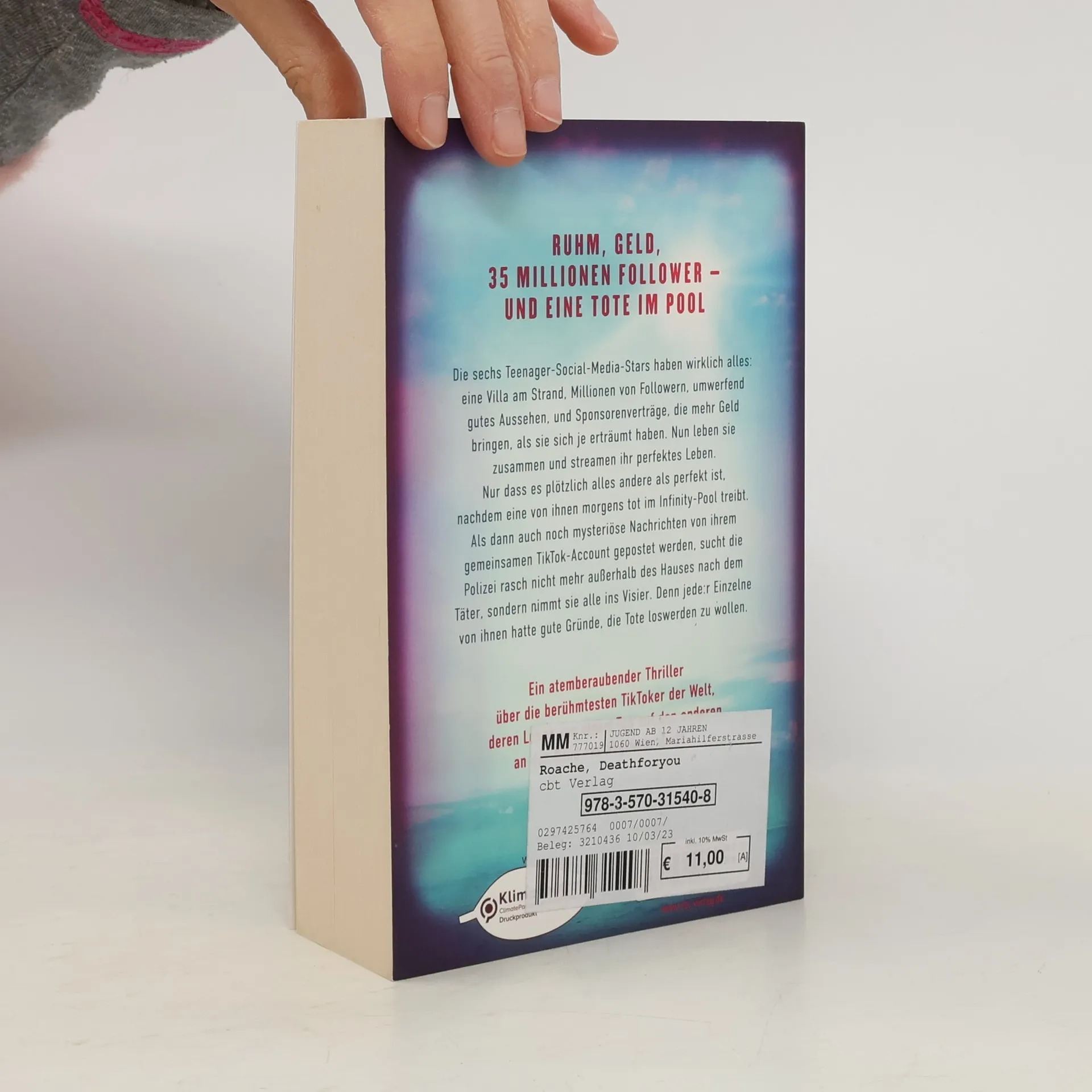 Ruhm, Geld, 35 Millionen Follower – und eine Tote im Pool Die sechs Teenager-Social-Media-Stars haben wirklich alles: eine Villa am Strand, Millionen von Followern, umwerfend gutes Aussehen, und Sponsorenverträge, die mehr Geld bringen, als sie sich je erträumt haben. Nun leben sie zusammen und streamen ihr perfektes Leben. Nur dass es plötzlich alles andere als perfekt ist, nachdem eine von ihnen morgens tot im Infinity-Pool treibt. Als dann auch noch mysteriöse Nachrichten von ihrem gemeinsamen TikTok-Account gepostet werden, sucht die Polizei rasch nicht mehr außerhalb des Hauses nach dem Täter, sondern nimmt sie alle ins Visier. Denn jede*r Einzelne von ihnen hatte gute Gründe, die Tote loswerden zu wollen. Aber nur eine*r von ihnen hat sie ermordet. Ein atemberaubender Thriller über die berühmtesten TikToker der Welt, deren Leben von einem Tag auf den anderen an den Rand des Abgrunds gerät ...