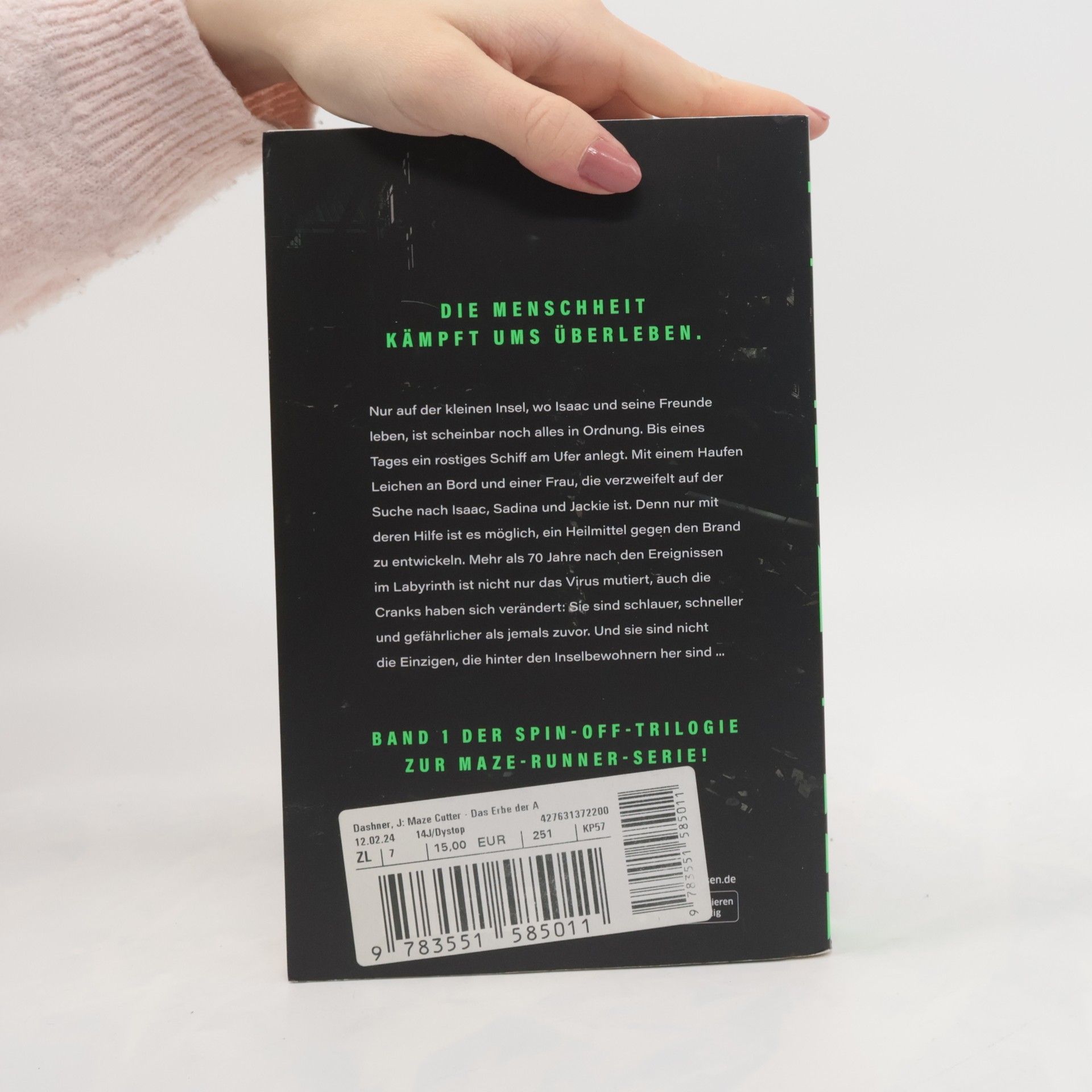 Die Menschheit kämpft ums Überleben. Nur auf einer kleinen Insel, wo Isaac mit seinen Freunden lebt, ist scheinbar noch alles in Ordnung. Bis eines Tages ein rostiges Schiff am Ufer anlegt. Mit einem Haufen Leichen an Bord und einer Frau, die verzweifelt auf der Suche nach Isaac und seinen Freunden ist. Denn nur mit deren Hilfe ist es möglich, ein Heilmittel gegen den Brand zu entwickeln. In all den Jahren ist nicht nur das Virus mutiert, auch die Cranks haben sich verändert: Sie sind schlauer, schneller und gefährlicher als jemals zuvor … Packend und dystopisch: Die Spin-off-Trilogie zur MAZE-RUNNER-Serie spielt 70 Jahre nach Labyrinth, Brandwüste und Todeszone. Band 2 erscheint im Februar 2024.