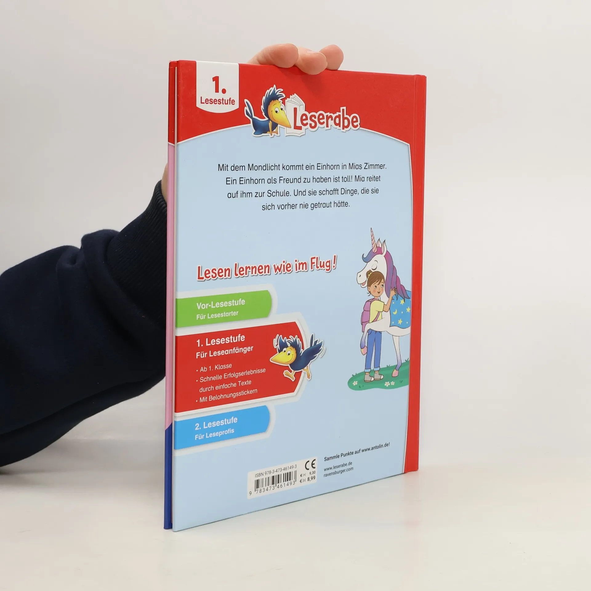 Lesen lernen wie im Flug! Eines Nachts fällt ein Lichtstrahl vom Mond in Mias Kinderzimmer und plötzlich steht dort ein Einhorn. Es wird Mias bester Freund. Ihre Eltern halten das Einhorn für einen Traum, aber Mia weiß es besser. Sie und das Einhorn haben viel Spaß miteinander und das Einhorn ist immer zur Stelle, wenn Mia etwas Magie nötig hat. Lesen lernen wie im Flug! Die Kinderbücher der Reihe Leserabe – 1. Lesestufe wurden mit Pädagogen entwickelt und richten sich an Leseanfänger ab der 1. Klasse. Kurze Texte in großer Fibelschrift sichern erste Leseerfolge und steigern die Lesekompetenz von Mädchen und Jungen ab 6 Jahren. Mit Belohnungsstickern. Empfohlen von Stiftung Lesen, gelistet bei Antolin.