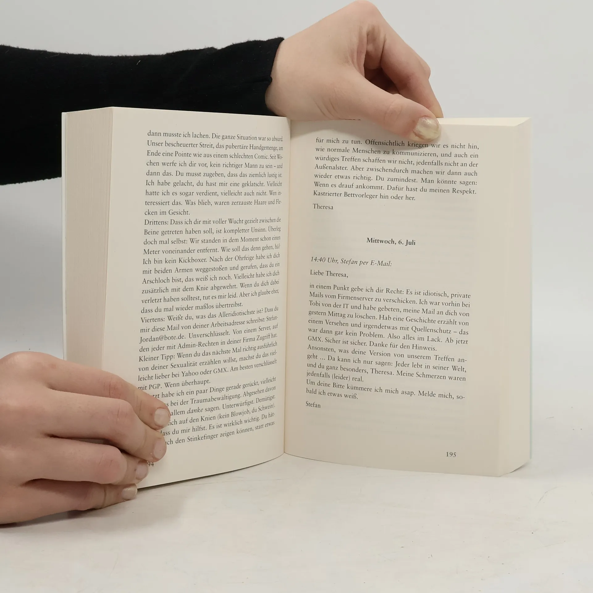 Zwanzig Jahre sind vergangen: Als sich Stefan und Theresa zufällig in Hamburg über den Weg laufen, endet ihr erstes Wiedersehen in einem Desaster. Zu Studienzeiten waren sie wie eine Familie füreinander, heute sind kaum noch Gemeinsamkeiten übrig. Stefan hat Karriere bei Deutschlands größter Wochenzeitung DER BOTE gemacht, Theresa den Bauernhof ihres Vaters in Brandenburg übernommen. Aus den unterschiedlichen Lebensentwürfen sind gegensätzliche Haltungen geworden. Stefan versucht bei seiner Zeitung, durch engagierte journalistische Projekte den Klimawandel zu bekämpfen. Theresa steht mit ihrem Bio-Milchhof vor Herausforderungen, die sie an den Rand ihrer Kraft bringen. Die beiden beschließen, noch einmal von vorne anzufangen, sich per E-Mail und WhatsApp gegenseitig aus ihren Welten zu erzählen. Doch während sie einander näherkommen, geraten sie immer wieder in einen hitzigen Schlagabtausch um polarisierende Fragen wie Klimapolitik, Gendersprache und Rassismusvorwürfe. Ist heute wirklich jeder und jede gezwungen, eine Seite zu wählen? Oder gibt es noch Gemeinsamkeiten zwischen den Welten? Und können Freundschaft und Liebe die Kluft überbrücken?